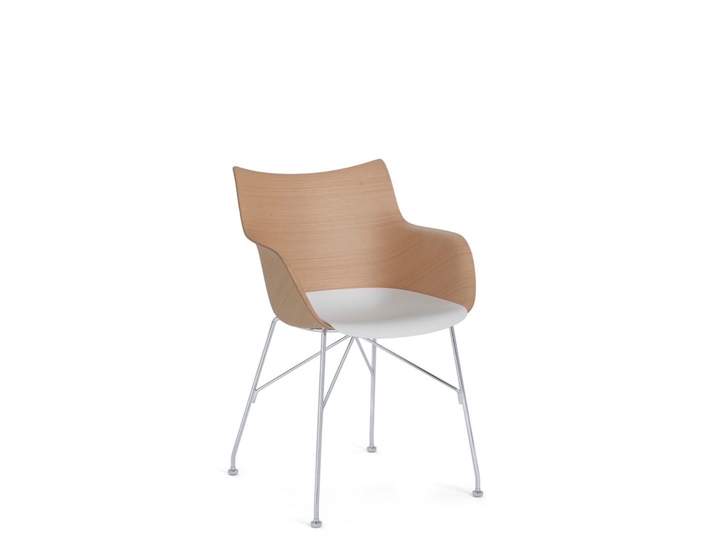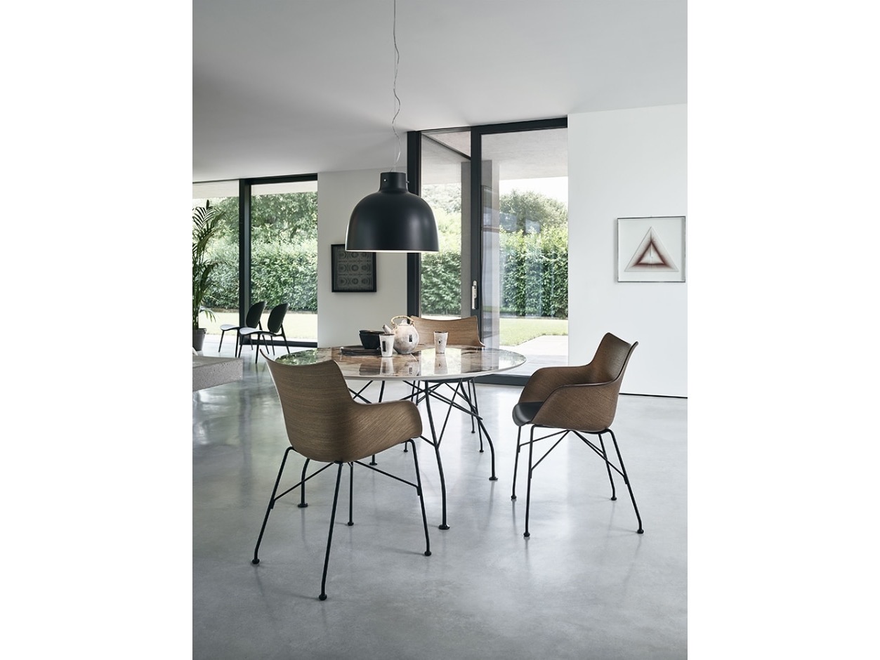 Q/Wood to fotel z kolekcji Smart Wood, o miękkich podłokietnikach zapewniających maksymalny komfort siedzenia. Wykorzystując opatentowaną technologię, drewno jest obrabiane za pomocą formy zaprojektowanej tak, aby doprowadzić krzywiznę panelu do samych krawędzi, tworząc siedzenie o falistej okrągłości.