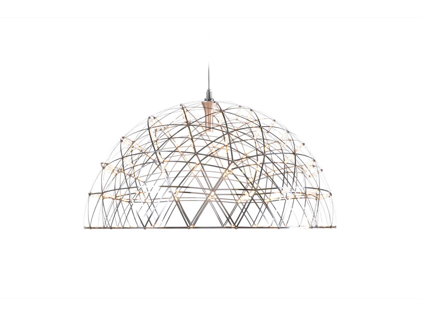 Kopuła lampy Raimond II Dome jest wykonana z tych samych materiałów, co inne lampy z tej kolekcji. Przerywane małe diody LED są wzmocnione potężnym źródłem światła pośrodku. Patrząc na Raimond Dome, czujesz się jak podczas wpatrywania się w delikatny blask gwiaździstej nocy. Dzięki czemu możesz spożywać posiłki pod gwiazdami.