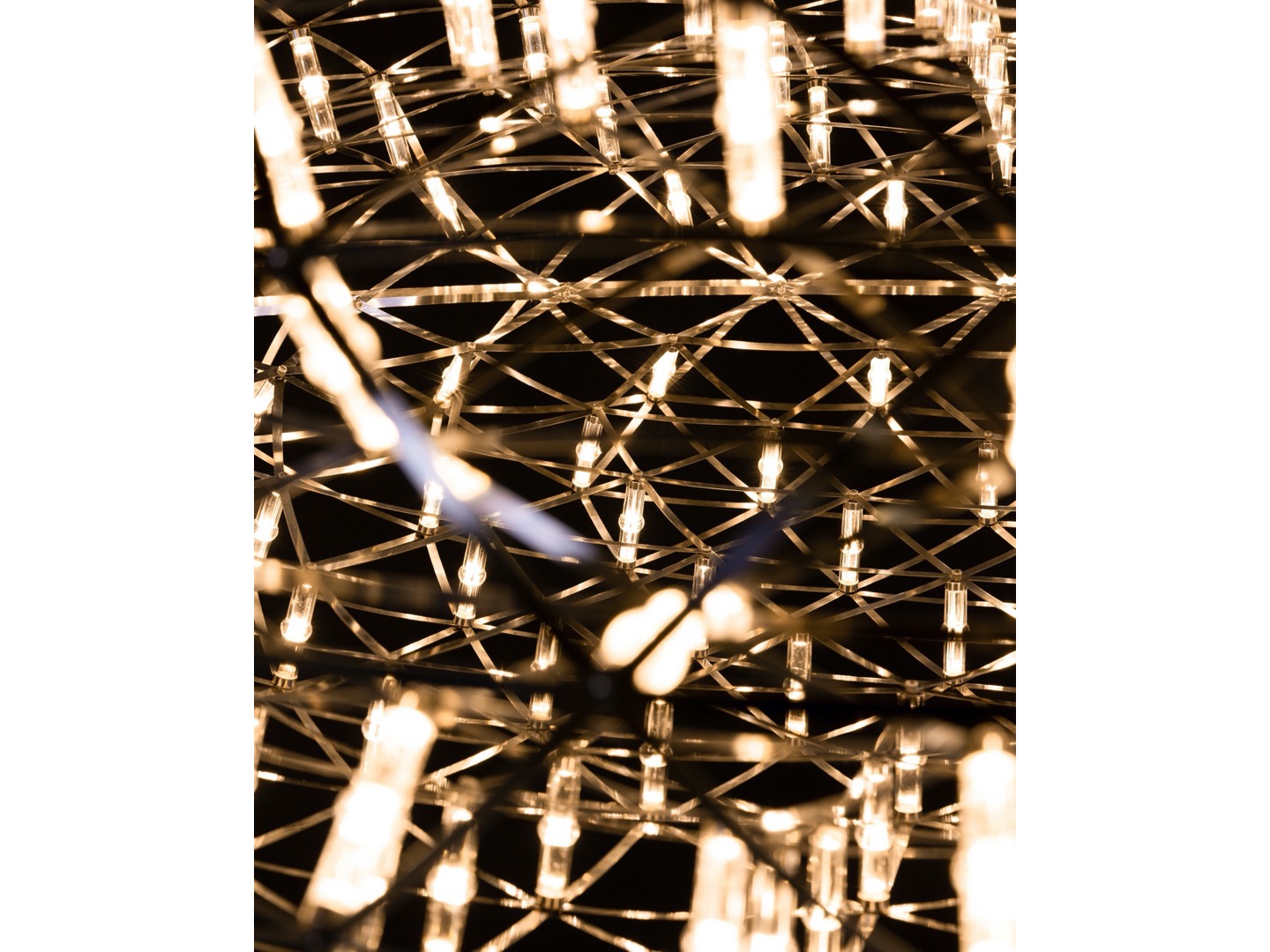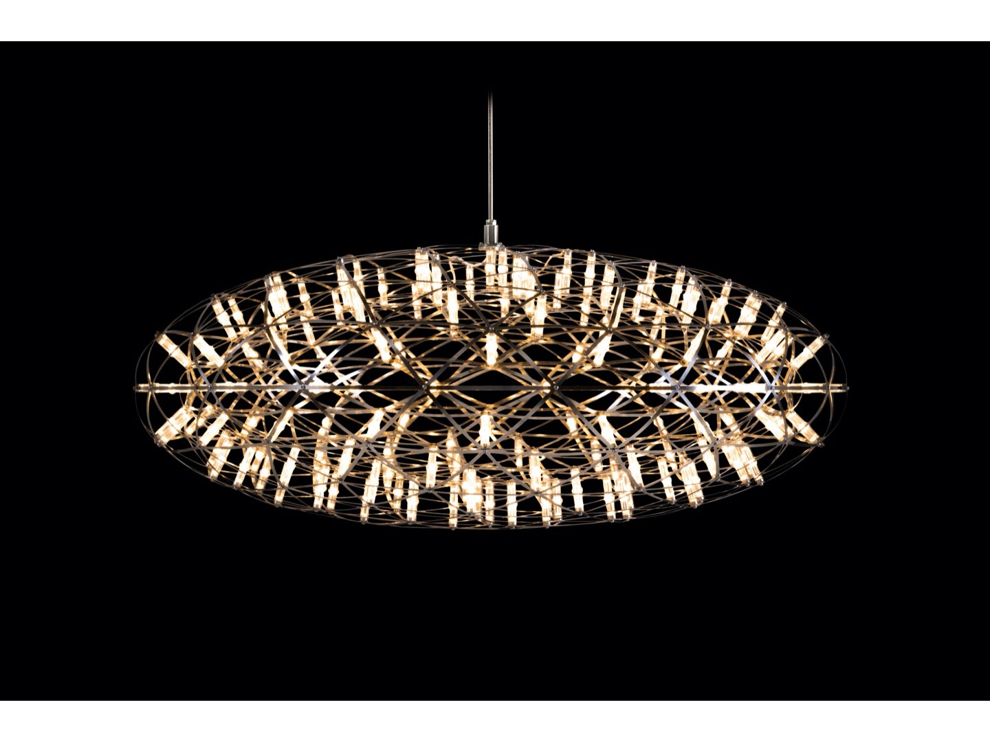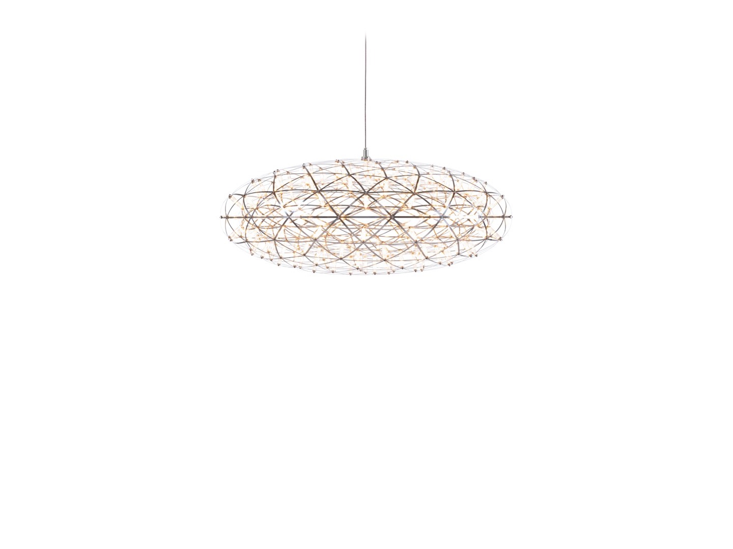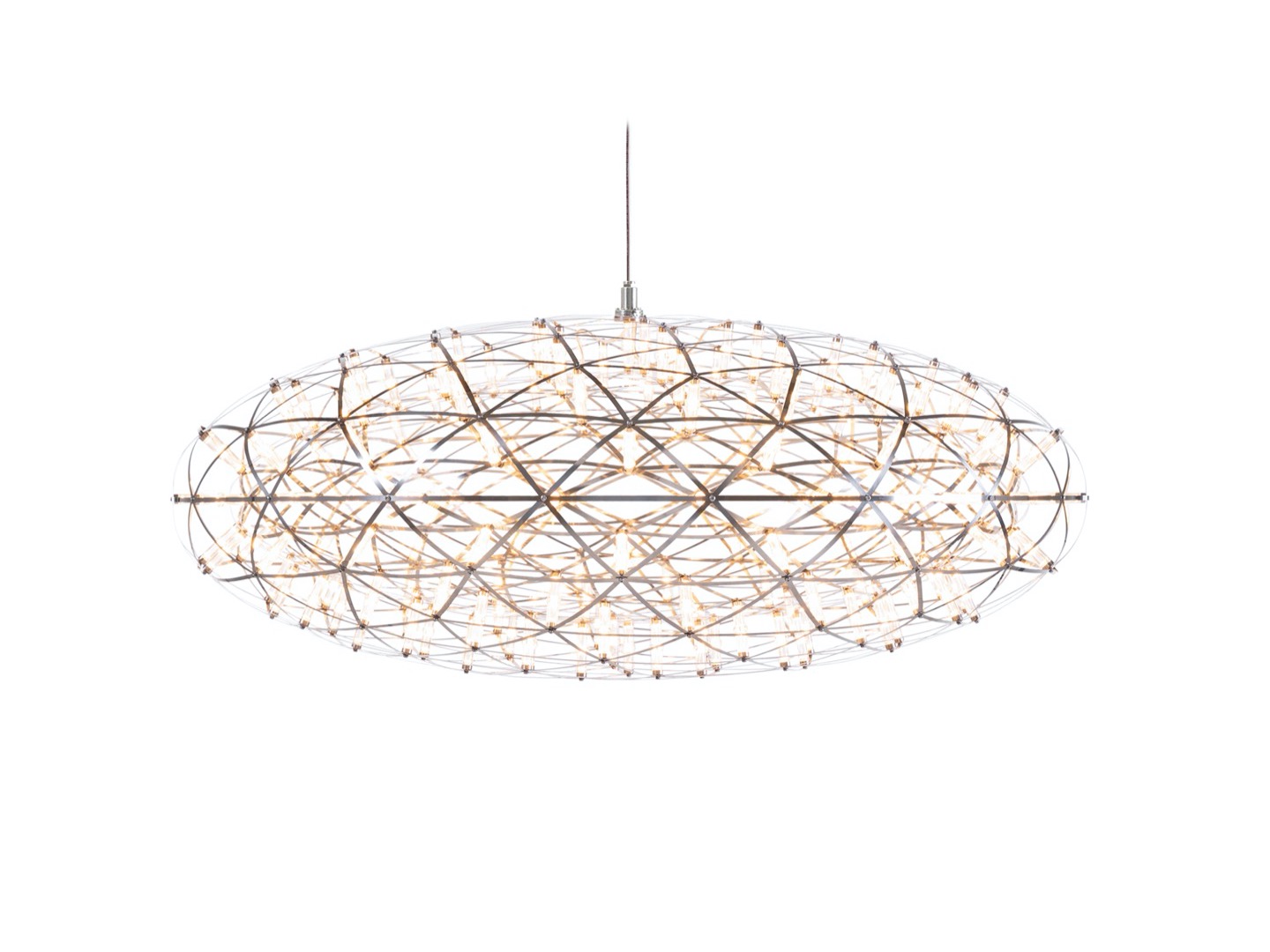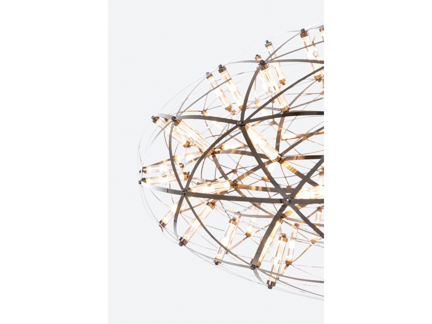 Raimond II Zafu tworzy pozaziemski efekt dzięki eliptycznemu kształtowi i maleńkim diodom LED. Podobnie jak inne lampy z kolekcji, Raimond Zafu wykonany został z tych samych eleganckich metalowych pasków.