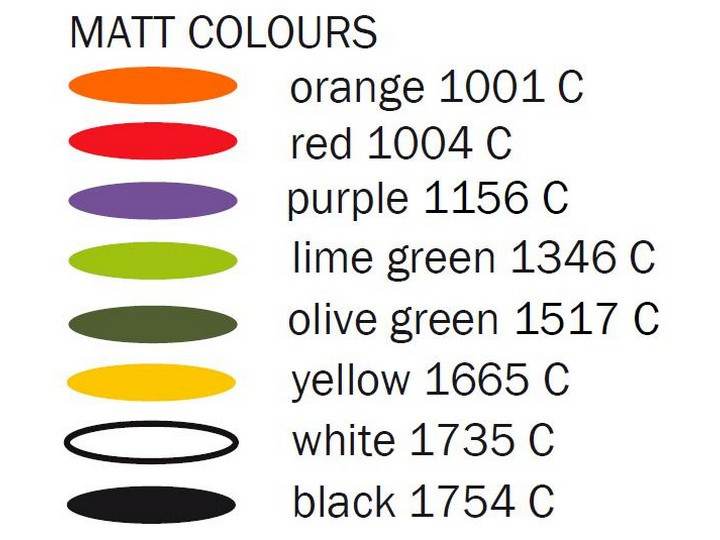Krzesło dostępne jest w kilku ciekawych i żywych kolorach: pomarańcz, czerwień, purpura, limonowa zieleń, oliwkowa zieleń, żółty, biały.