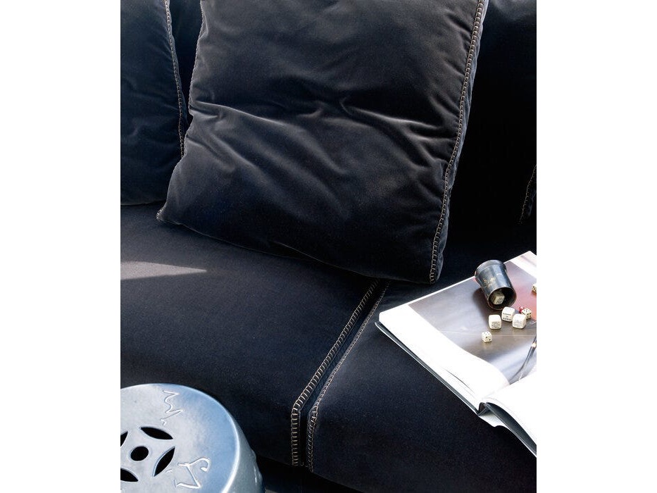Charakterystyczne dla sofy są przykuwające uwagę ściegi, które mogą być w kontrastującym lub takim samym kolorze co sofa.