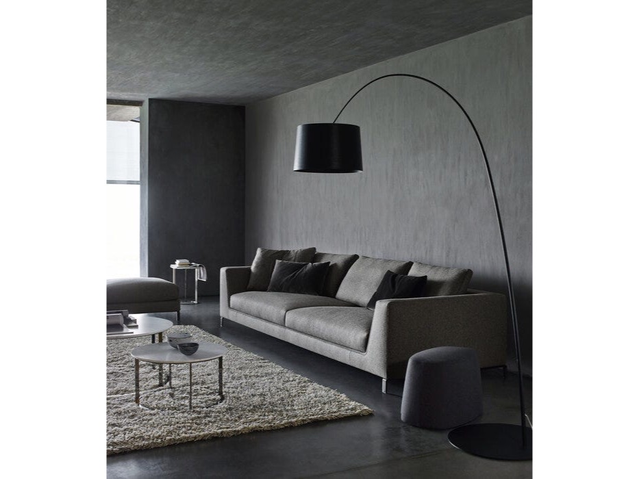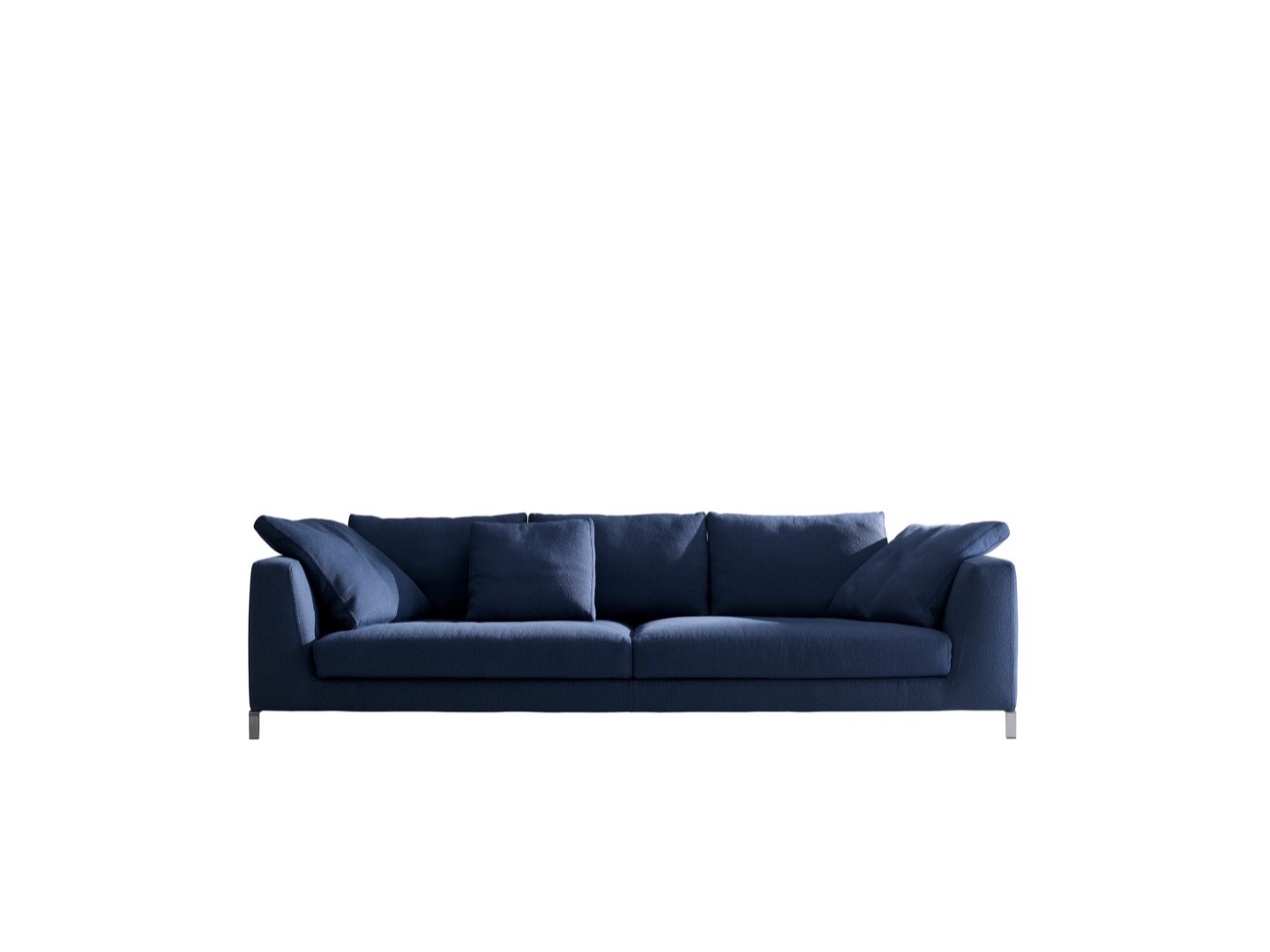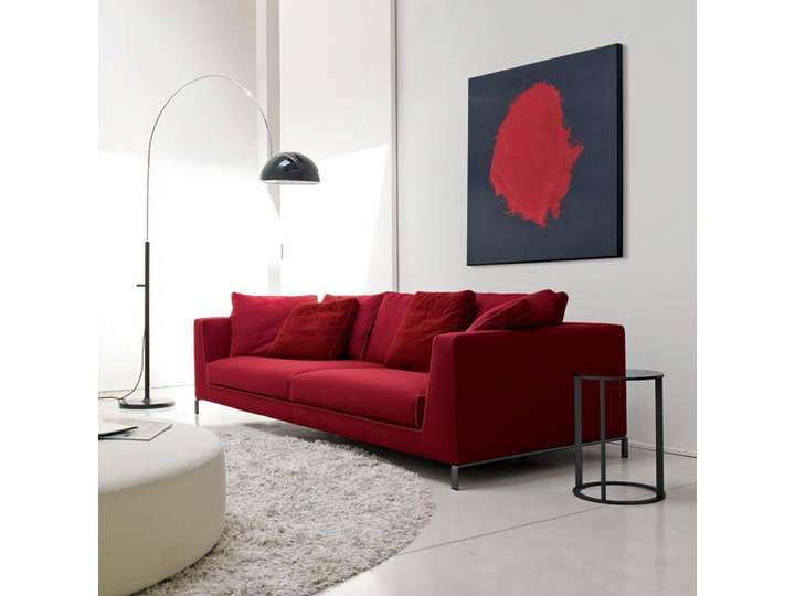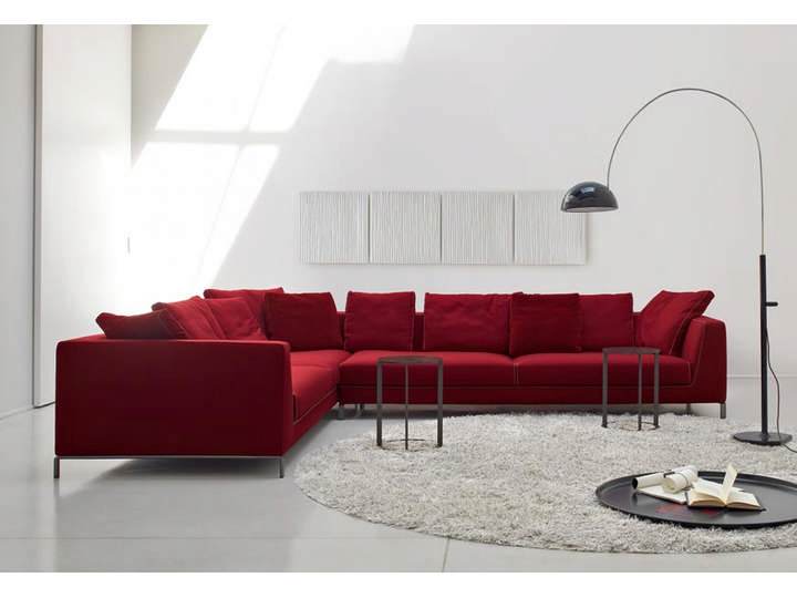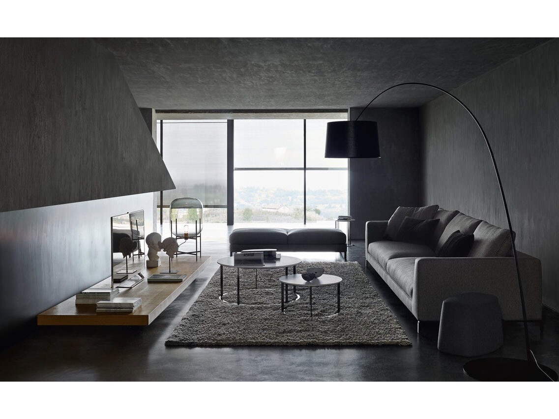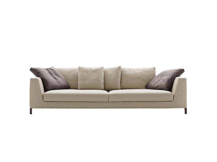 Ray jest sofą modułową o horyzontalnych liniach z elementami szezlongu oraz podnóżkami.