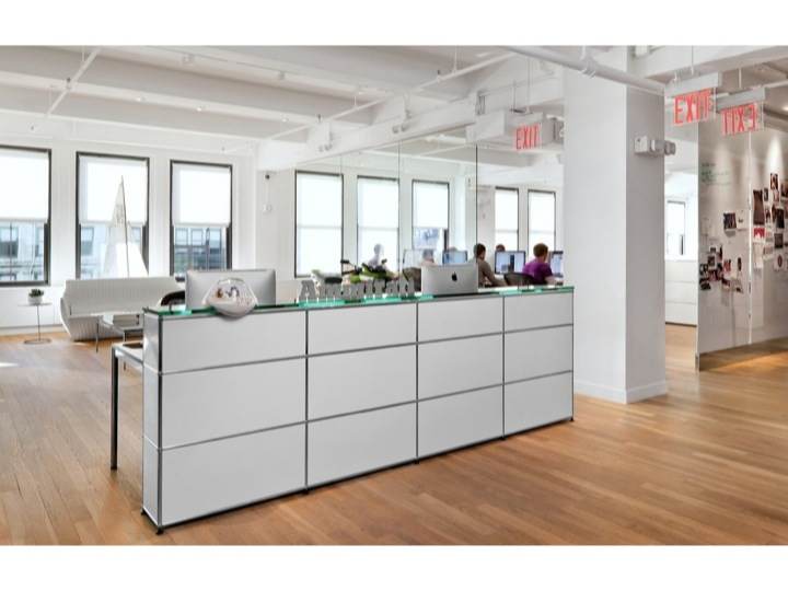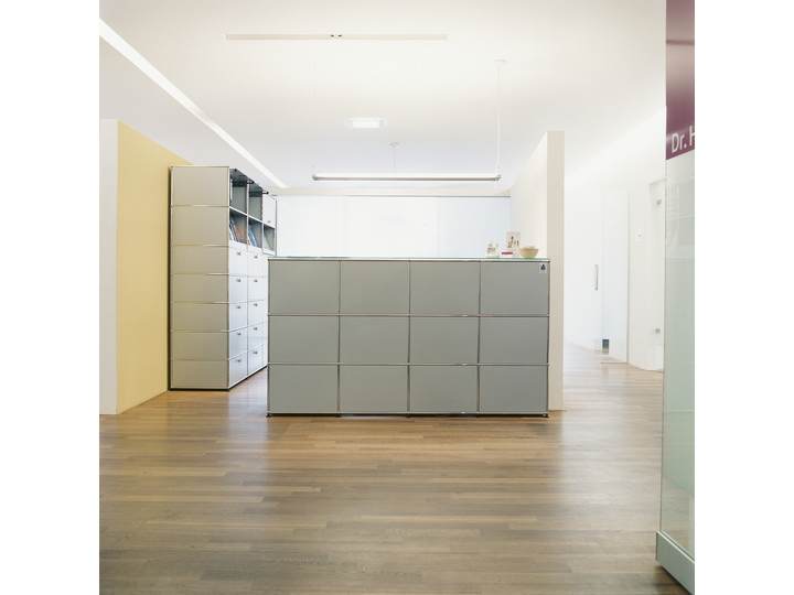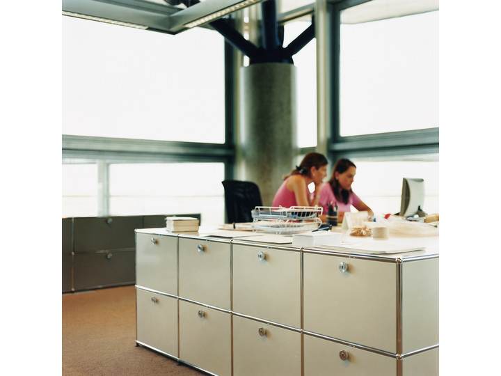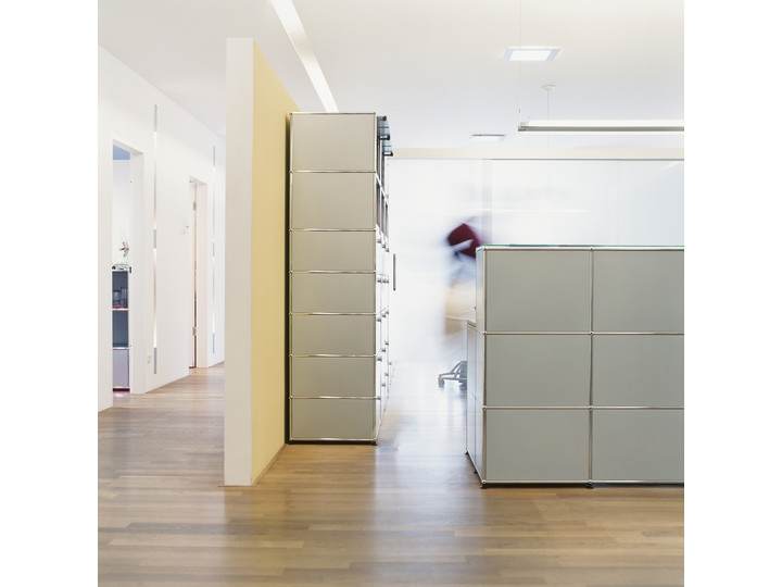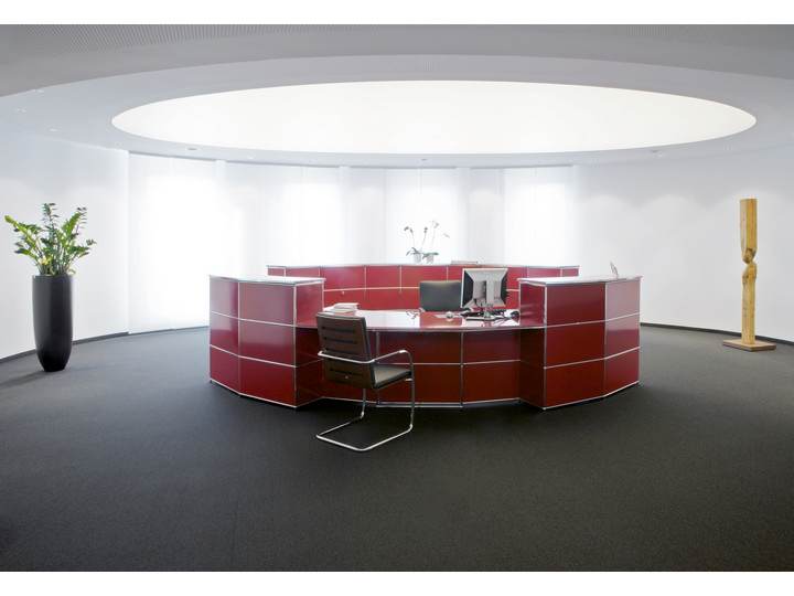 Meble modułowe nie mają jednej formy i funkcji - dostosowują się do miejsca, gdzie są umieszczone. Ani wymiar, ani przestrzeń nie są ograniczeniem, projektując recepcję należy skoncentrować się wyłącznie na funkcji. USM ma ponad 50 lat doświadczenia w produkcji mebli stosowanych w biurach. Nie dziwi więc to, że ma rozwiązania dla każdej biurowej potrzeby. Półki na segregatory, zamykane lub otwarte szafki, szuflady na dokumenty, przegródki na koperty i przybory. Wszystko idealnie pasujące do biurek i kontenerów. W systemie USM są również przewidziane rozwiązania umożliwiające poprowadzenie przewodów elektrycznych i logicznych (sieć komputerowa, telefon), wentylację urządzeń itp. I zawsze, kiedy przyjdzie konieczność wprowadzenia zmian, można to bardzo łatwo zrobić!