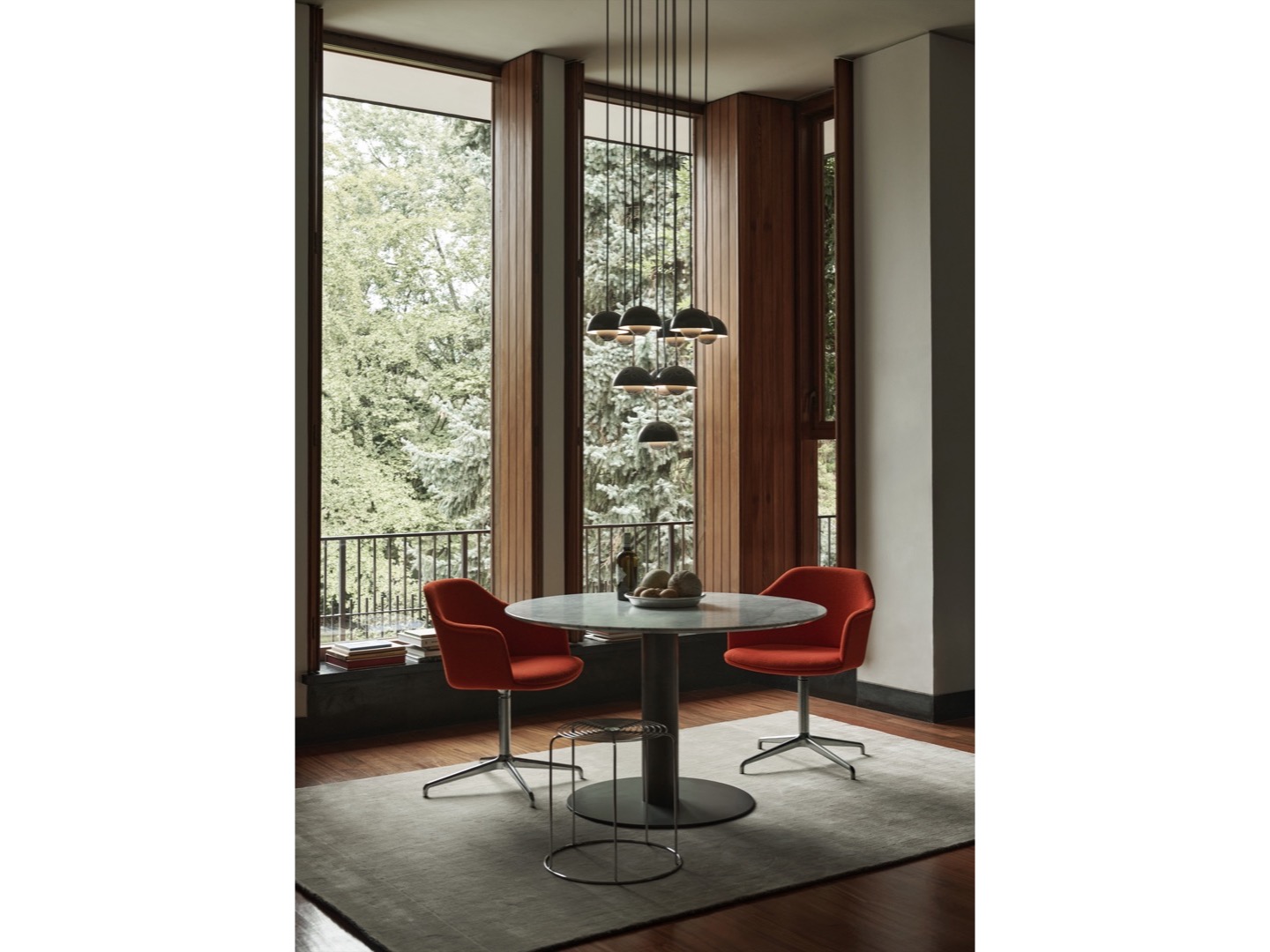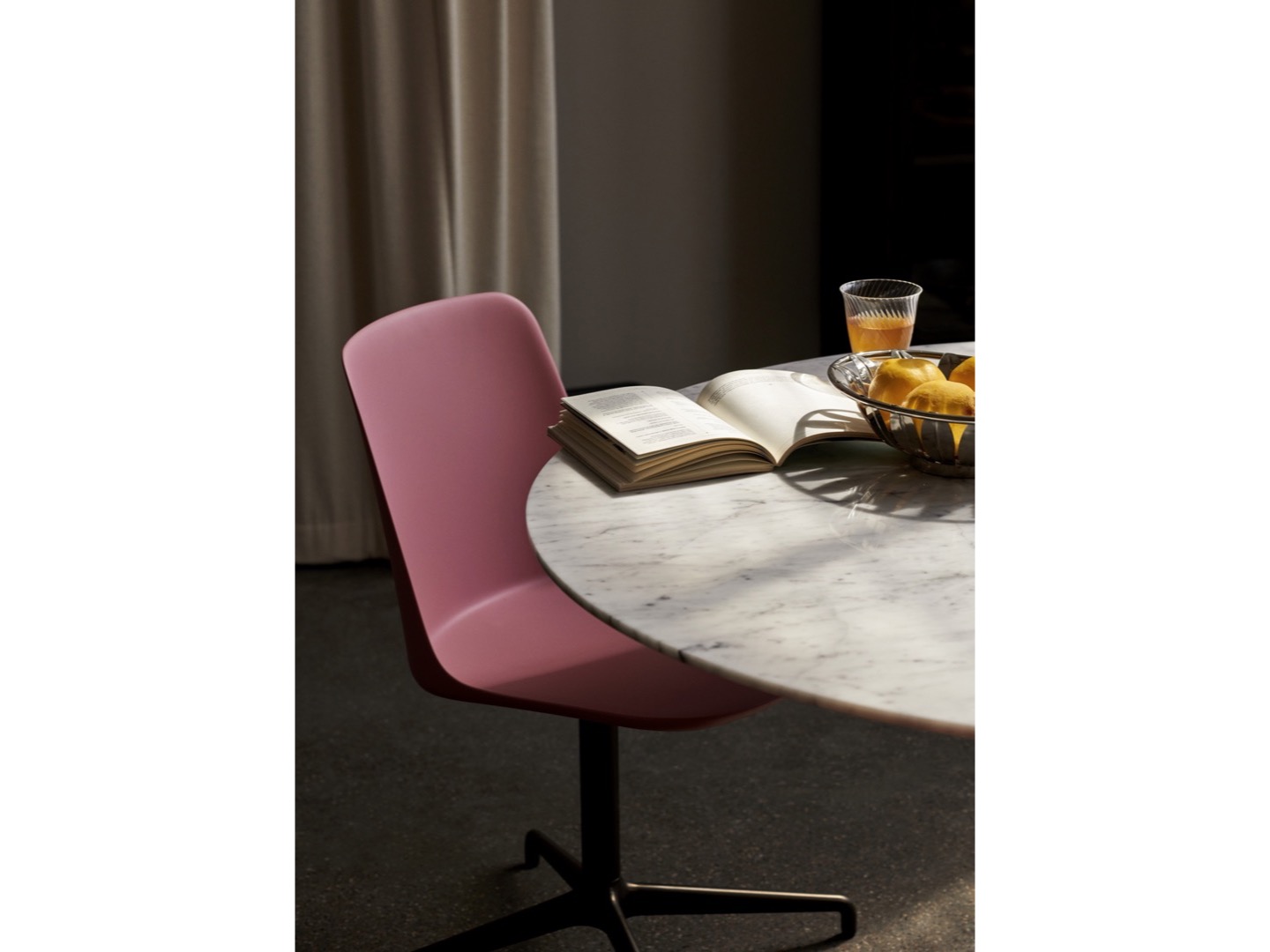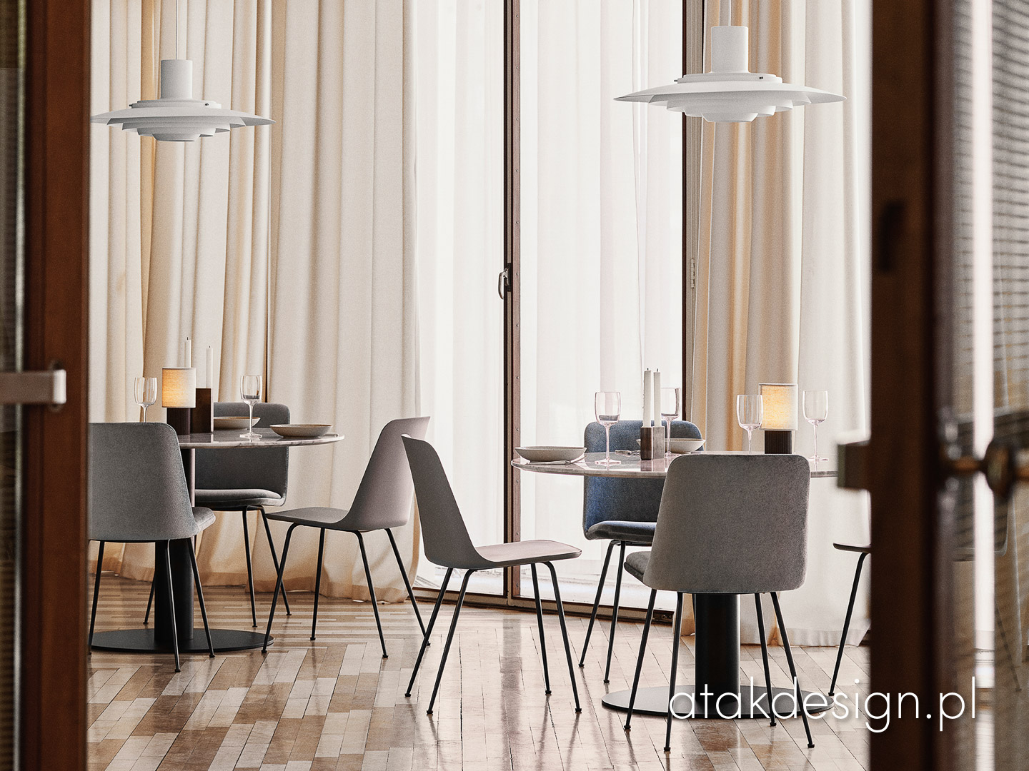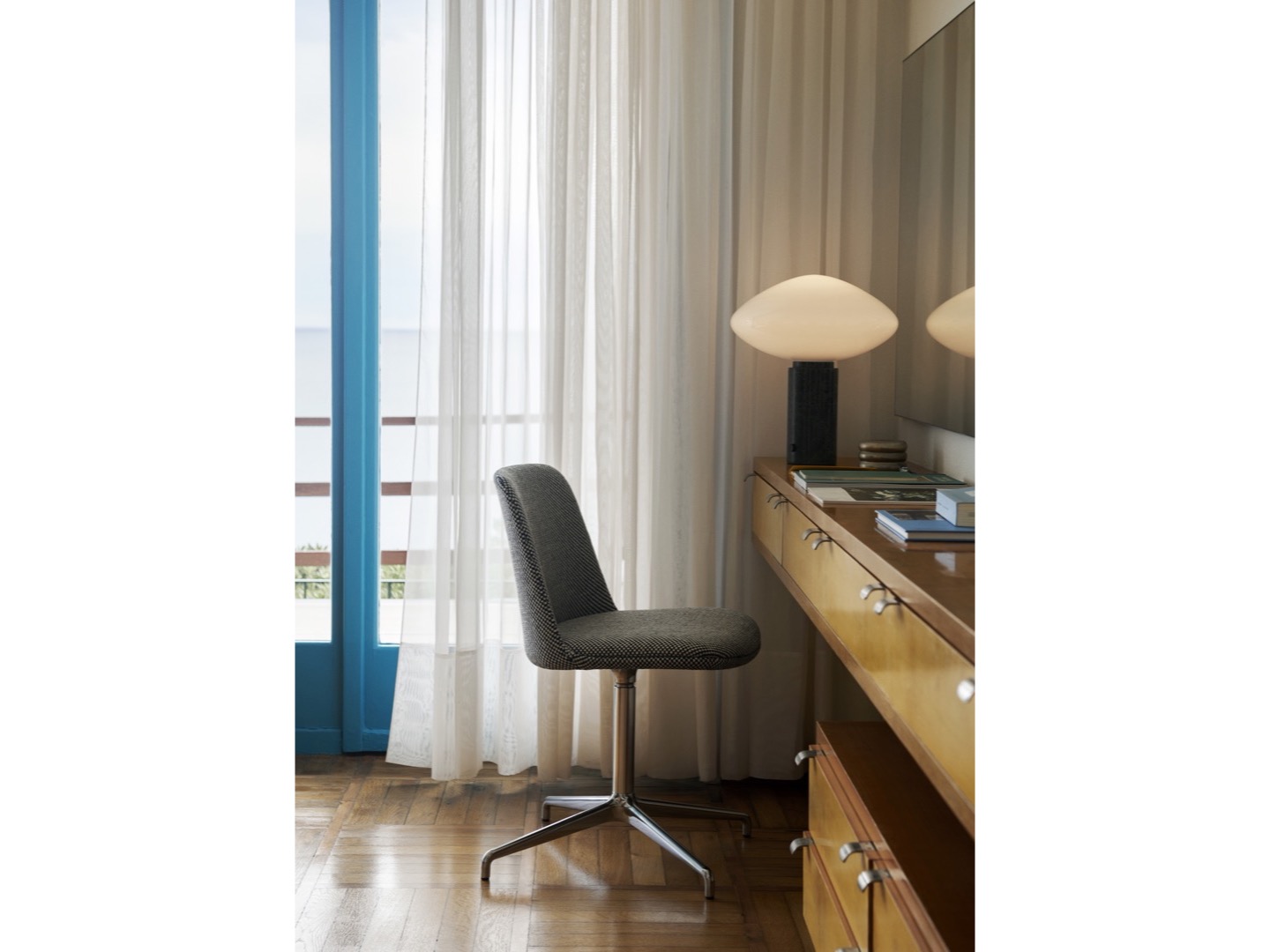 W kolekcji znajdują się między innymi krzesła tapicerowane, z bazą na kółkach, sztaplowane i dające możliwość łączenia w rzędy.