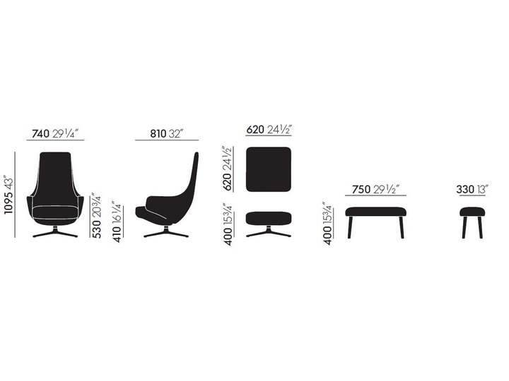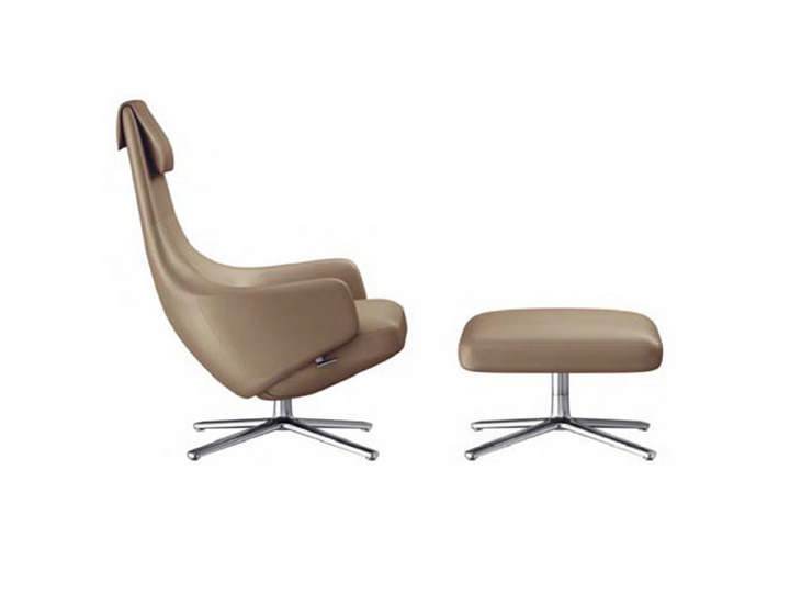Repos i Grand Repos wraz podnóżkami to kolejny zrealizowany przez Vitrę projekt znakomitego Antonio Citterio. Kształt oparcia i podłokietników zapraszają do zrelaksowania się w objęciach tych wspaniałych foteli. Obrotowa baza występuje w wersji polerowanego aluminium lub malowanego. Formę oparcia i siedziska wzbogacają dodatkowo przeszycia na krawędziach.