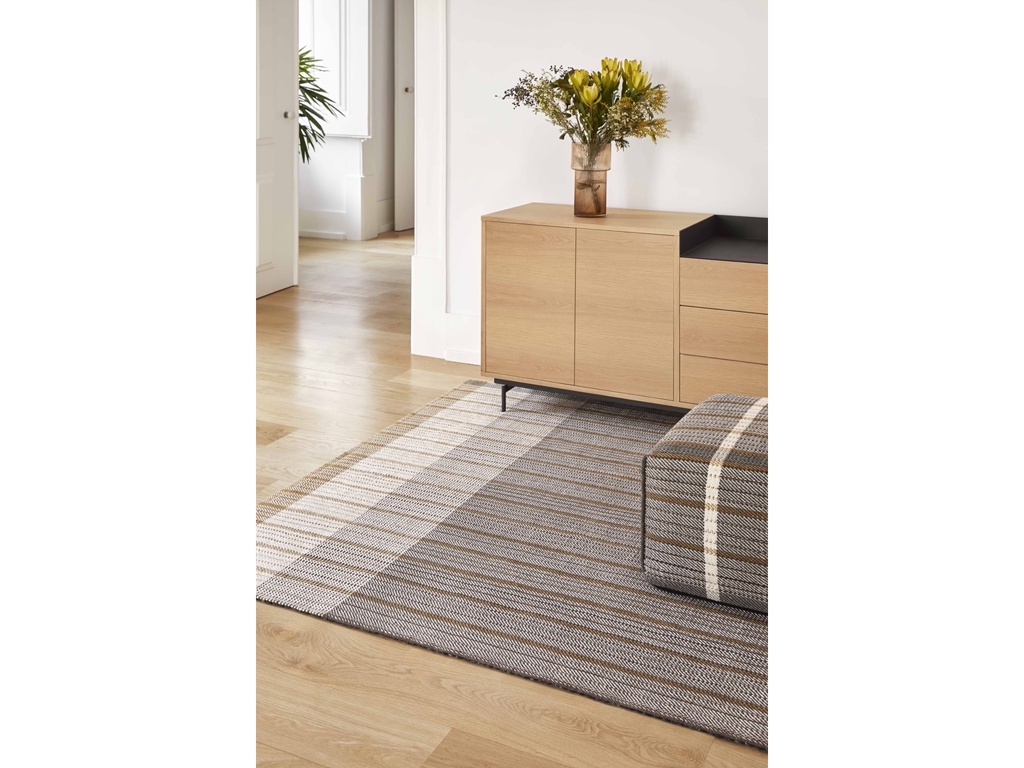 Nowa i złożona technika ręcznego krosna, opracowana specjalnie dla tej kolekcji, pozwala łączyć przędze o różnych grubościach i materiałach, tkając jednocześnie dwa ODWRACALNE wykończenia: z jednej strony 100% wełna dziewicza, a z drugiej len. Podczas gdy wełna użyta do produkcji REVERSIBLE zapewnia dodatkową teksturę i ciepło, len „oddycha” i jest lekki i chłodny pod stopami, gdy temperatura wzrasta. Genialny pomysł, który pozwoli Twojej przestrzeni płynnie i komfortowo dostosować się do pór roku, naturalnie.