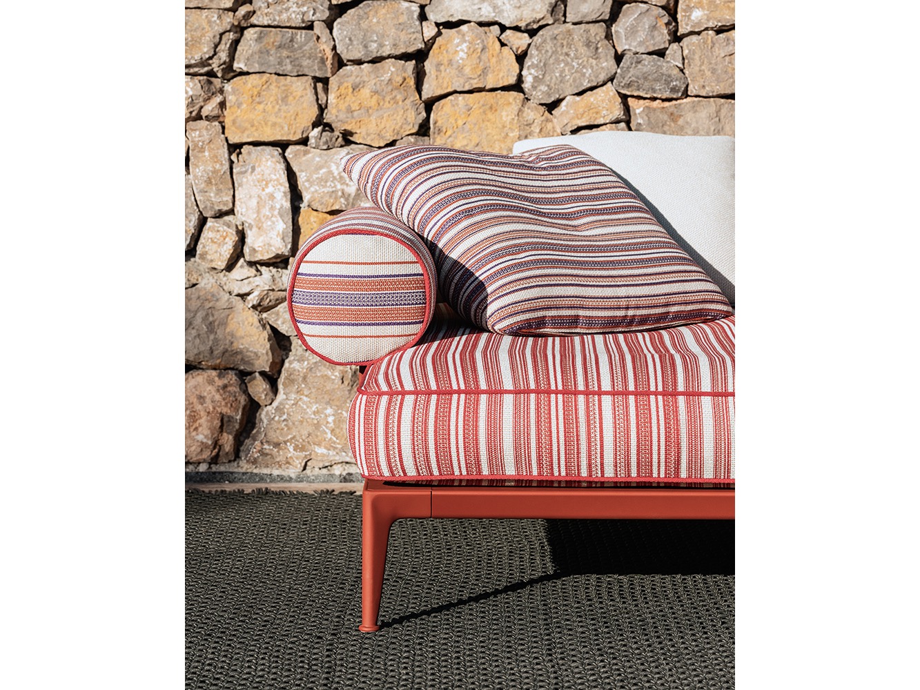 Sofy i ich elementy (środkowe i narożne, szezlong i ottoman) są dostępne w wielu różnych kształtach i rozmiarach, które dzięki wyjątkowej wszechstronności elementów modułowych i dostępności ogromnej liczby wersji wykończenia nadają się do aranżacji w przestrzeni zewnętrznej zgodnie z indywidualnym gustem użytkownika. Punktem wyjścia jest futonowa podstawa z elastycznymi listwami z włókna szklanego spoczywającymi na aluminiowej ramie, do której można przymocować dwa rodzaje podłokietników lub oparcia: jedno z włókna polipropylenowego, drugie z poduszką w formie wałka. Na wierzchu znajdują się wygodne poduszki pełniące funkcje materaca/siedziska. Całość nadaje sofom Ribes wyjątkowo żywy i miękki wygląd. Ramy malowane są w odcieniach antracytu, szałwii i gliny. Te same nuty kolorystyczne można odnaleźć także w oparciach pleców i podłokietnikach. Wybór tkanin jest bardzo szeroki, a ich wzory inspirowane są tradycyjnym rękodziełem zebranym podczas licznych podróży projektanta do Ameryki Południowej.