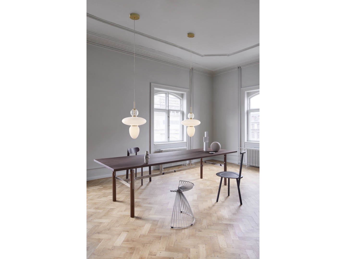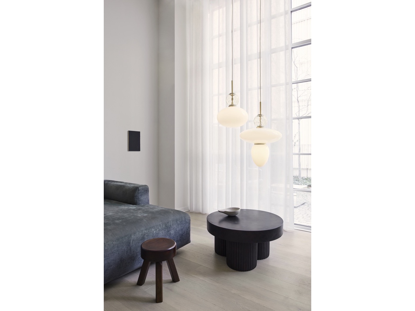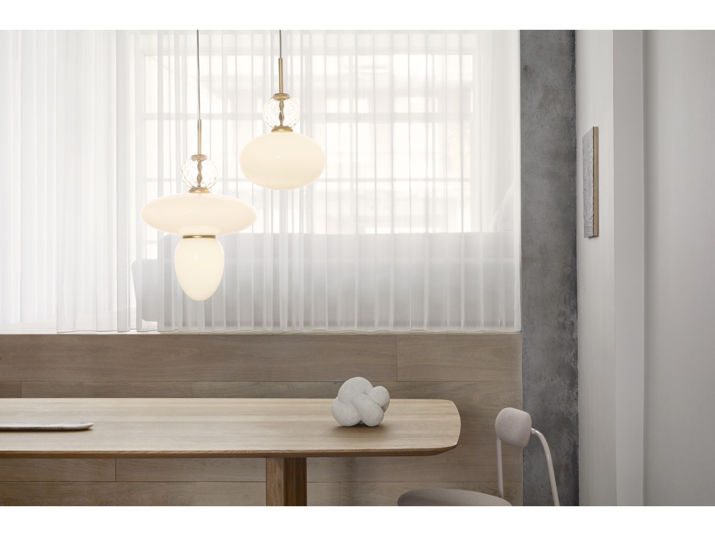 Rizzatto 43 daje miękkie i równomierne światło, dzięki czemu idealnie sprawdzi się nad stołem jadalnym lub sofą. Nadaje się również do sypialni lub przedpokoju. Lampa posiada regulację wysokości.