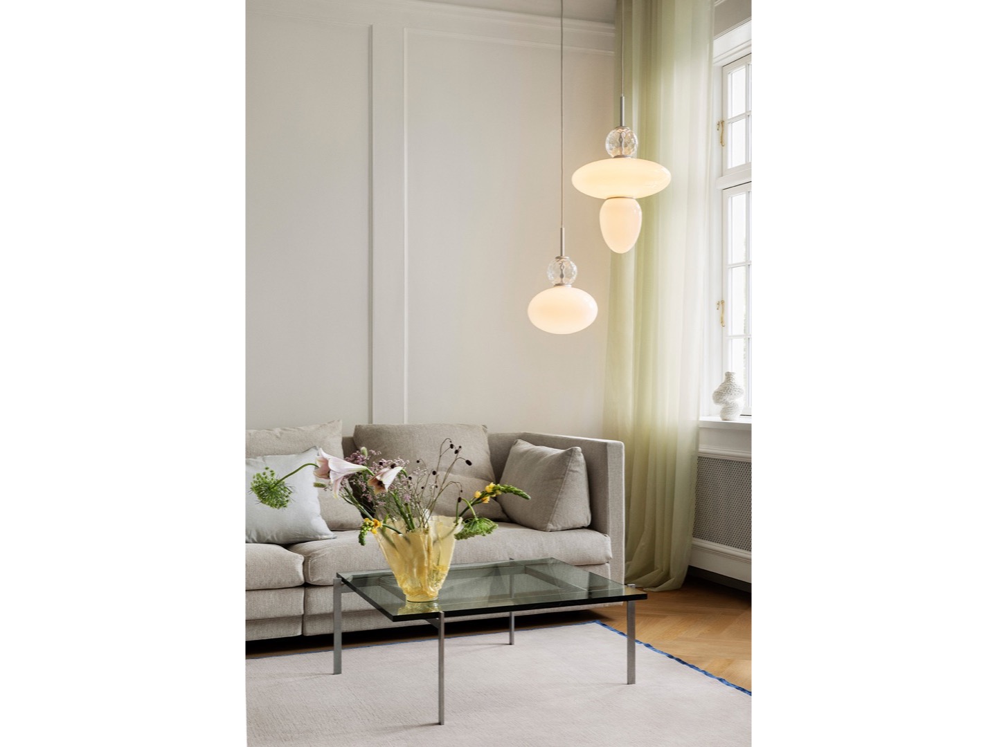 Rizzatto 43 daje miękkie i równomierne światło, dzięki czemu idealnie sprawdzi się nad stołem jadalnym lub sofą. Nadaje się również do sypialni lub przedpokoju. Lampa posiada regulację wysokości.