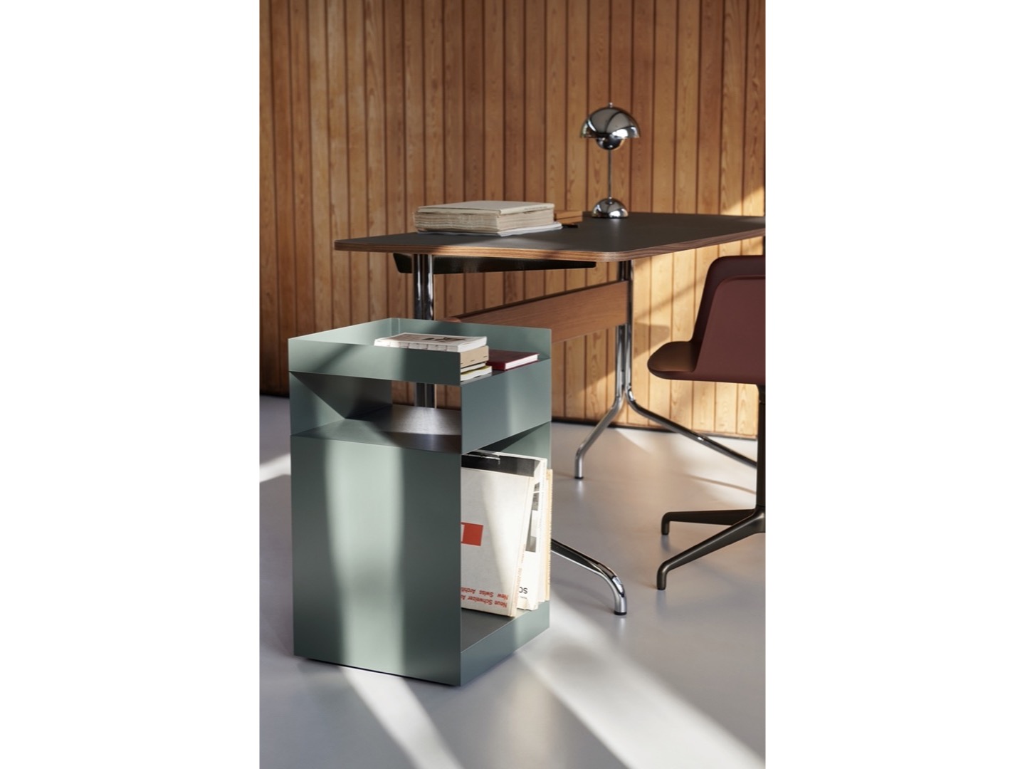 Niepozorny wygląd Rotate przeczy jego wysoce funkcjonalnemu projektowi. Zaprojektowany, aby pasował do wielu różnych zastosowań – od wózka biurowego po stolik nocny lub szafkę w łazience – ten asymetryczny element można umieścić w dowolnej przestrzeni. Aby zapewnić maksymalną zdolność adaptacji, jest osadzony na dyskretnych kołach, żeby ułatwić szybkie i łatwe manewrowanie z jednego miejsca do drugiego.