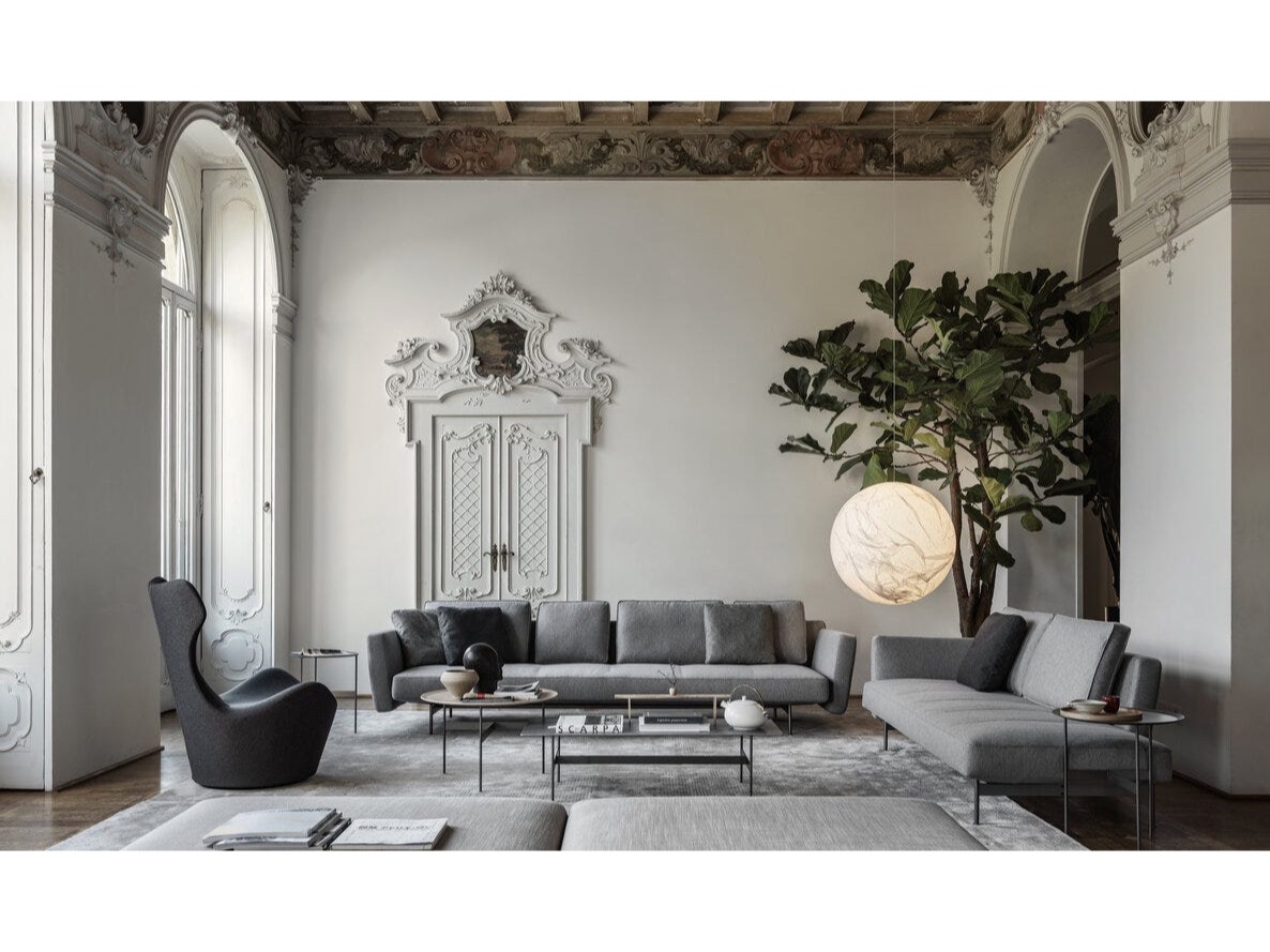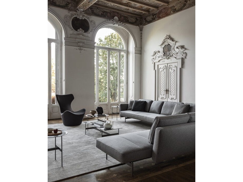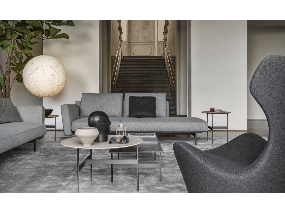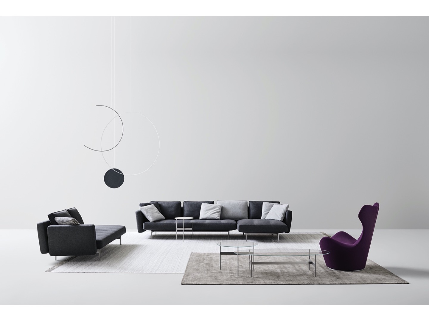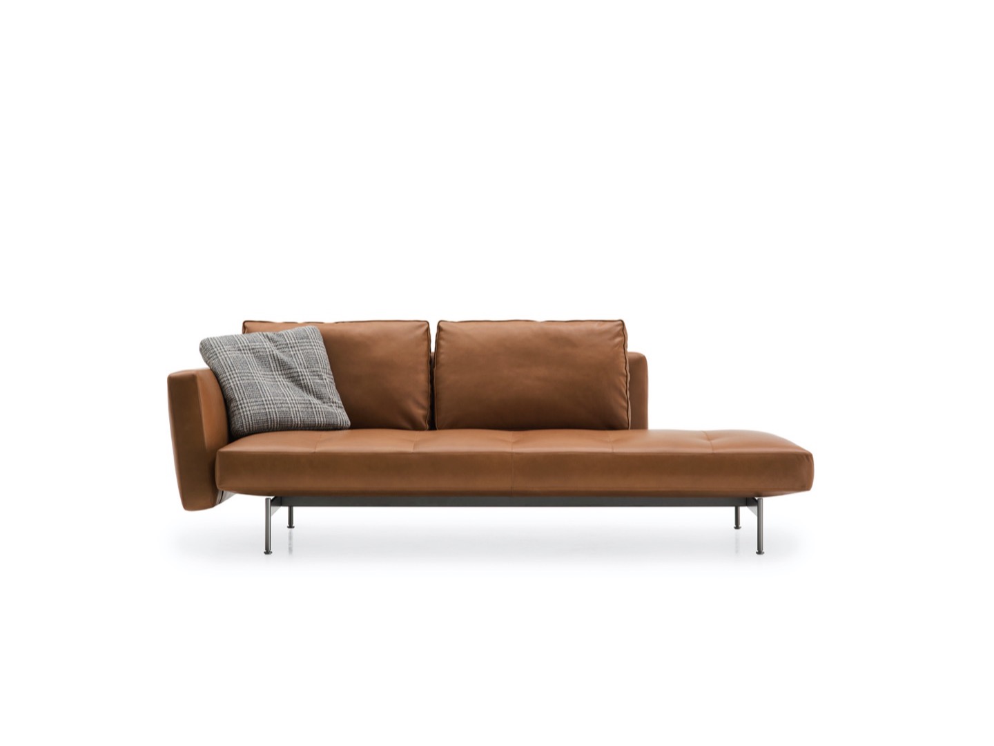 System jest wzbogacony o szezlong (cm 105 x 135), który nadaje się do różnych zastosowań: jako element końcowy w kompozycji liniowej, z bardziej otaczającym oparciem i dodatkowymi podłokietnikami, może stać samodzielnie lub wraz z innym szezlongiem może stworzyć sofę z głębokim siedziskiem. Detale poduszek i podstawy nośnej wpływają na lekkość konstrukcji. Poduszka siedziska ma szwy modułowe, od 35 do 45 cm. Poduszki oparcia, dostępne są w dwóch rozmiarach. Podstawa systemu siedzeń wykonana jest z poprzeczki z zaokrąglonymi stalowymi nóżkami połączonymi ze sobą prętem. Całość wykończona w kolorze cyny.