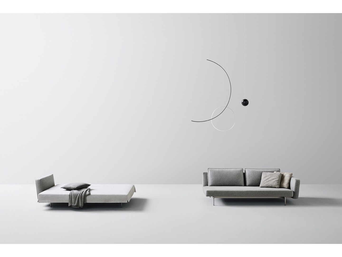 System oferuje również rozkładaną sofę (cm 150 x 210), jedyną w kolekcji B&B Italia, w której zastosowano inne elementy siedziska i oparcia sof. Wymienny prawy lub lewy podłokietnik może służyć jako zagłówek, gdy po przesunięciu siedziska i przewróceniu oparcia sofa staje się pojedynczym łóżkiem.