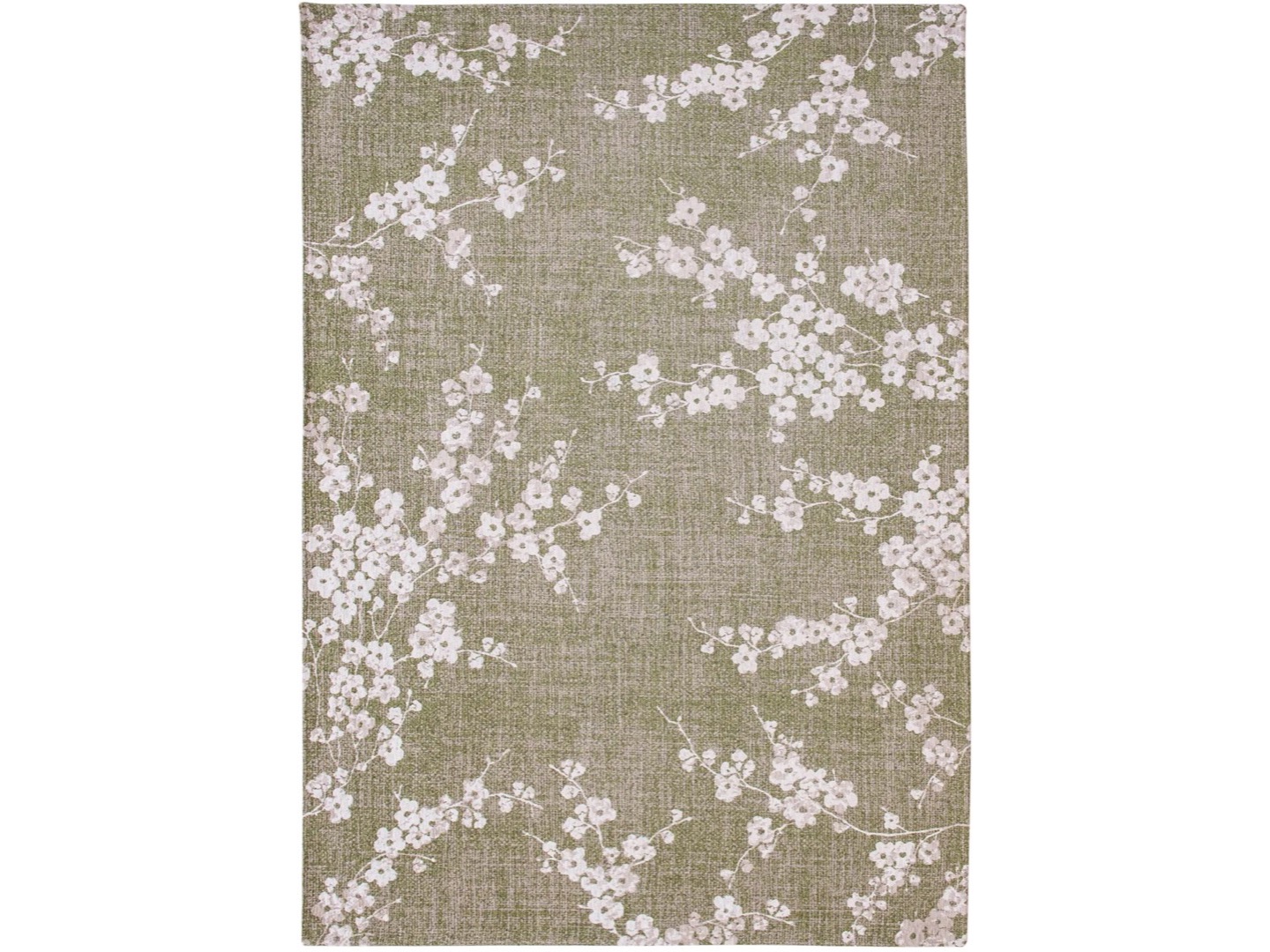 Zielony Dywan w Kwiatki – SAKURA WET GARDEN 9372, cenionej belgijskiej marki Louis De Poortere, z kolekcji Sakura. Kolekcja to ukłon w stronę Japonii. Dywan przedstawia kwiaty z drzewa japońskiej wiśni – symbol elegancji i stylu.
