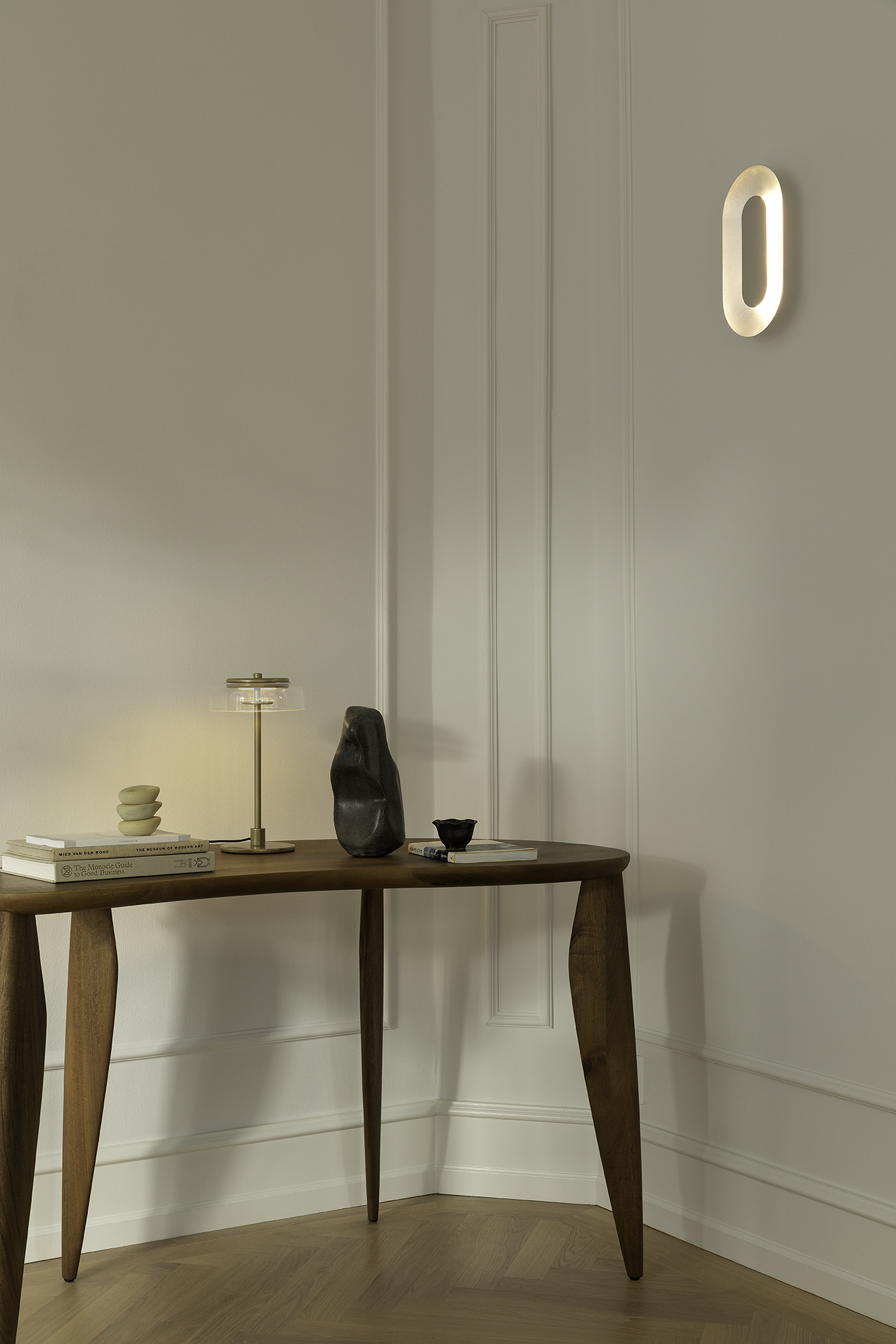 Sasi Large to wyrafinowana designerska lampa ścienna LED stworzona we współpracy z projektantem Rickiem Tegelaarem. Kinkiet Sasi ma miękkie, okrągłe kształty i pośrednie, harmonijne oświetlenie. Duży, owalny klosz z satynowo-srebrnym wykończeniem odbija światło ze zintegrowanego modułu LED, umieszczonego za polerowanym na wysoki połysk kloszem.