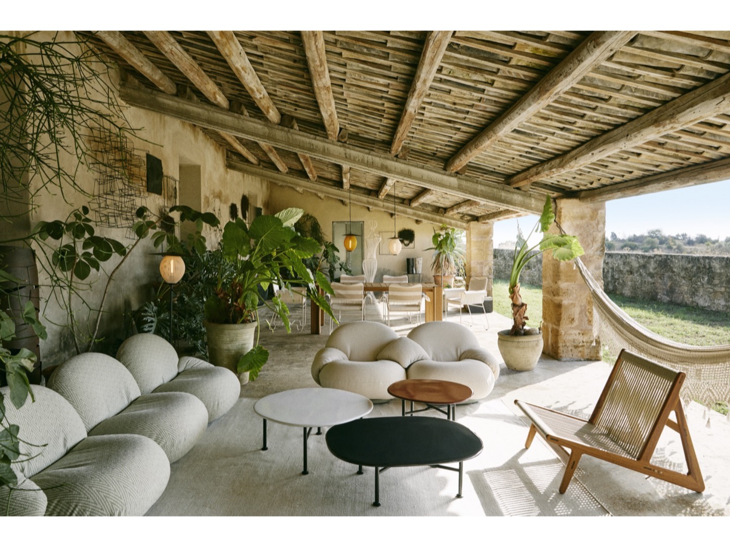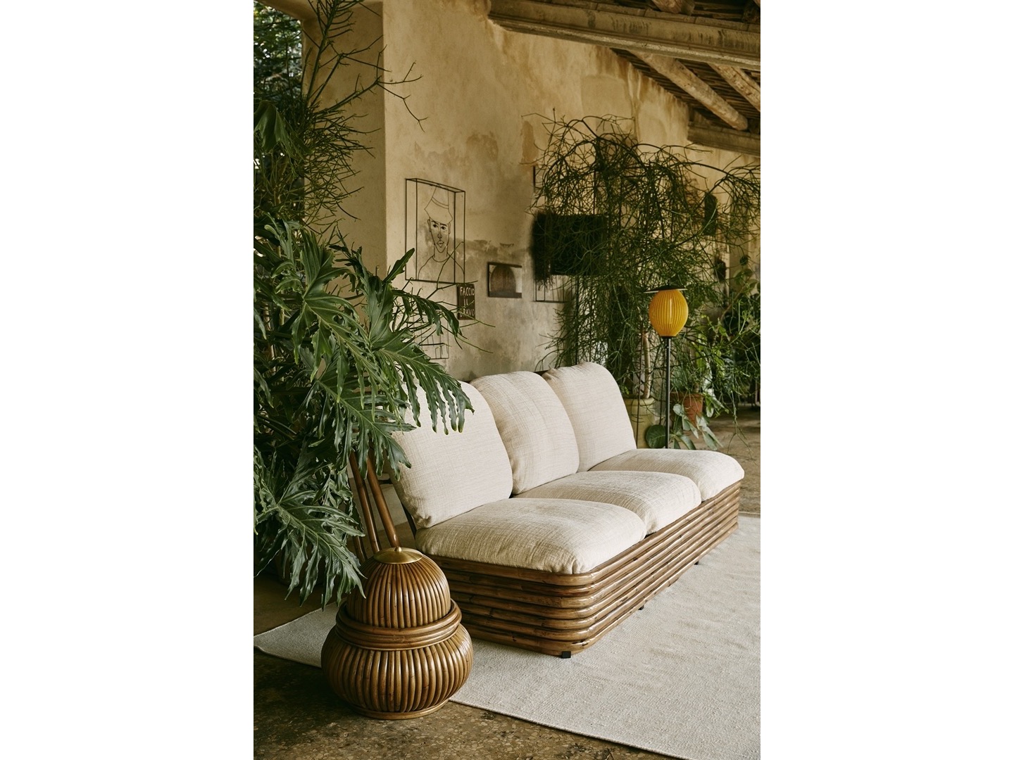 Nowoczesne nawet 70 lat po ich pierwszym stworzeniu, oba projekty Satellite idealnie nadają się do instalacji na zadaszonych tarasach, werandach lub innych osłoniętych miejscach jadalnych. Dostępne są dwa rozmiary lamp wiszących, a zarówno lampy wiszące, jak i lampa podłogowa są dostępne z półmatowym kloszem w kolorze kremowej bieli lub musztardowego złota.