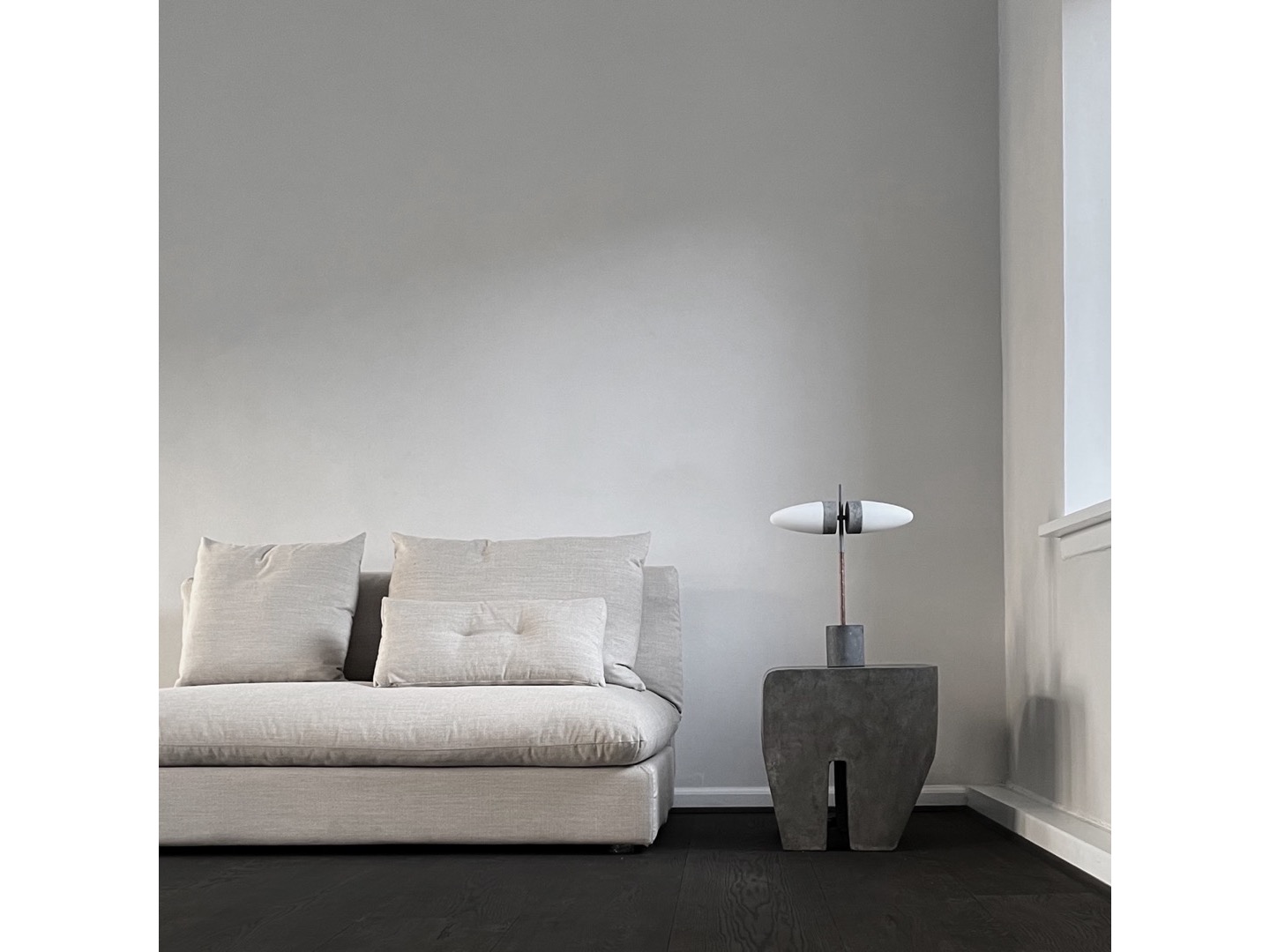 Sculp jest odlany z lekkiego betonu włóknistego, który tworzy wyjątkową teksturę powierzchni i zwiększa mobilność.