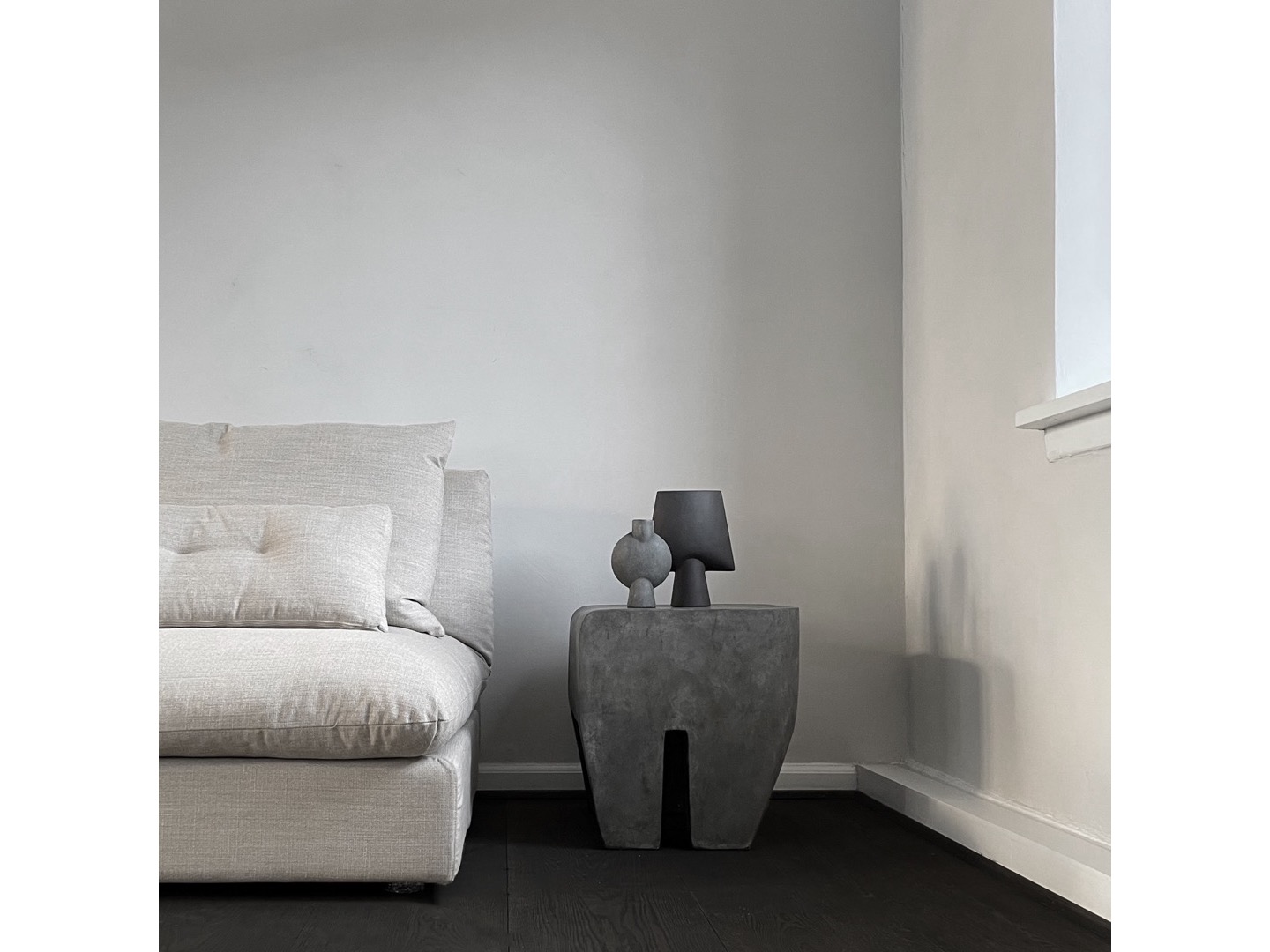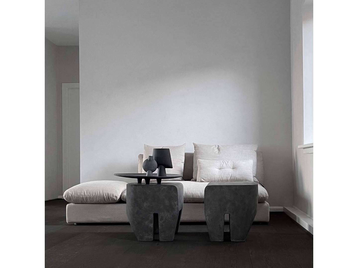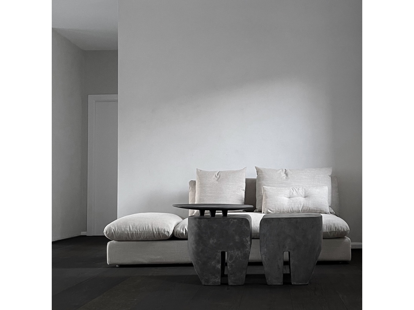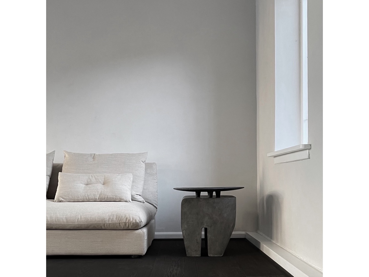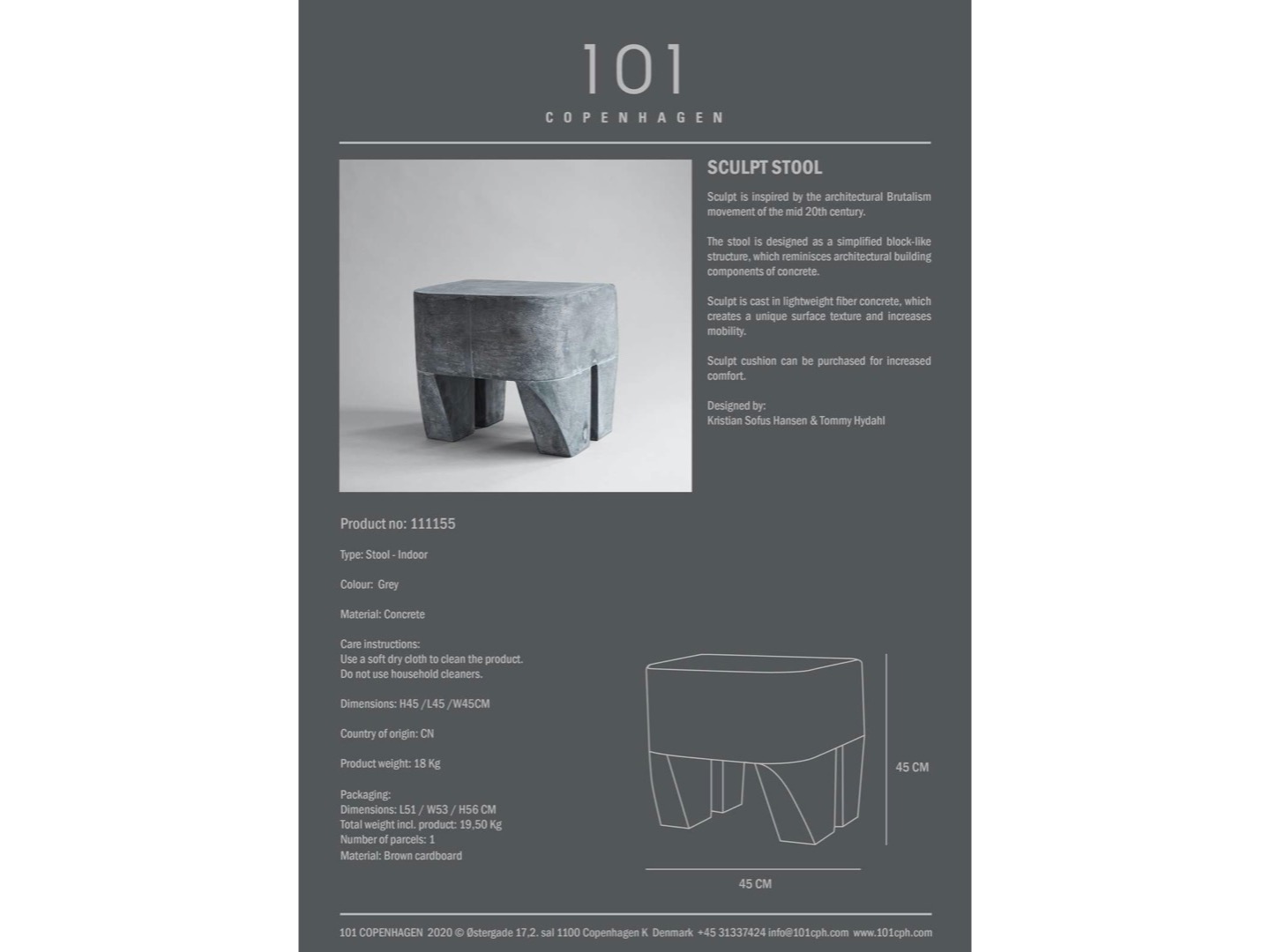 Taboret zaprojektowano jako uproszczoną konstrukcję bryły, przypominającą architektoniczne budowle z betonu.