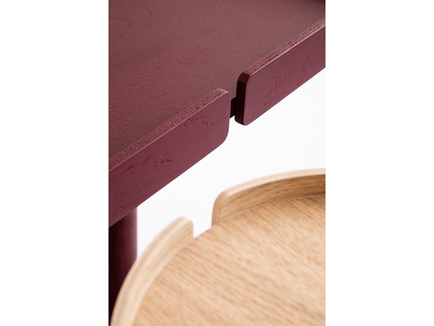 Blat/podstawa: wykonany ze sklejki o grubości 16mm okleinowanej dwustronnie okleiną dębową; obrzeża wykonane są ze sklejki giętej o grubości 6mm, okleinowane dwustronnie okleiną dębową