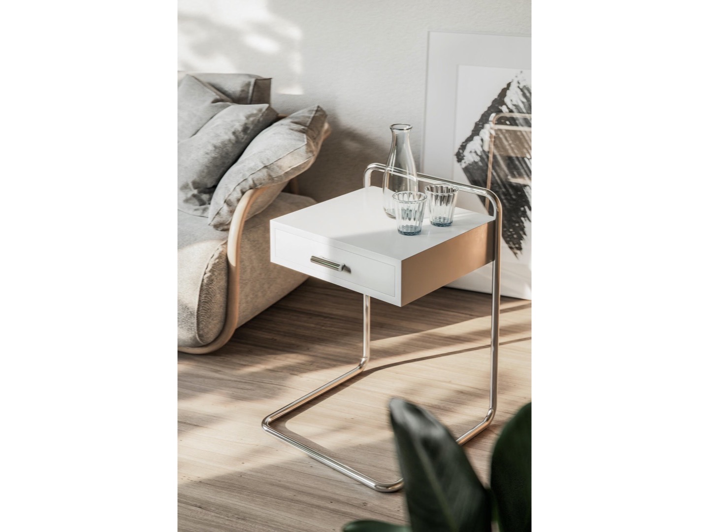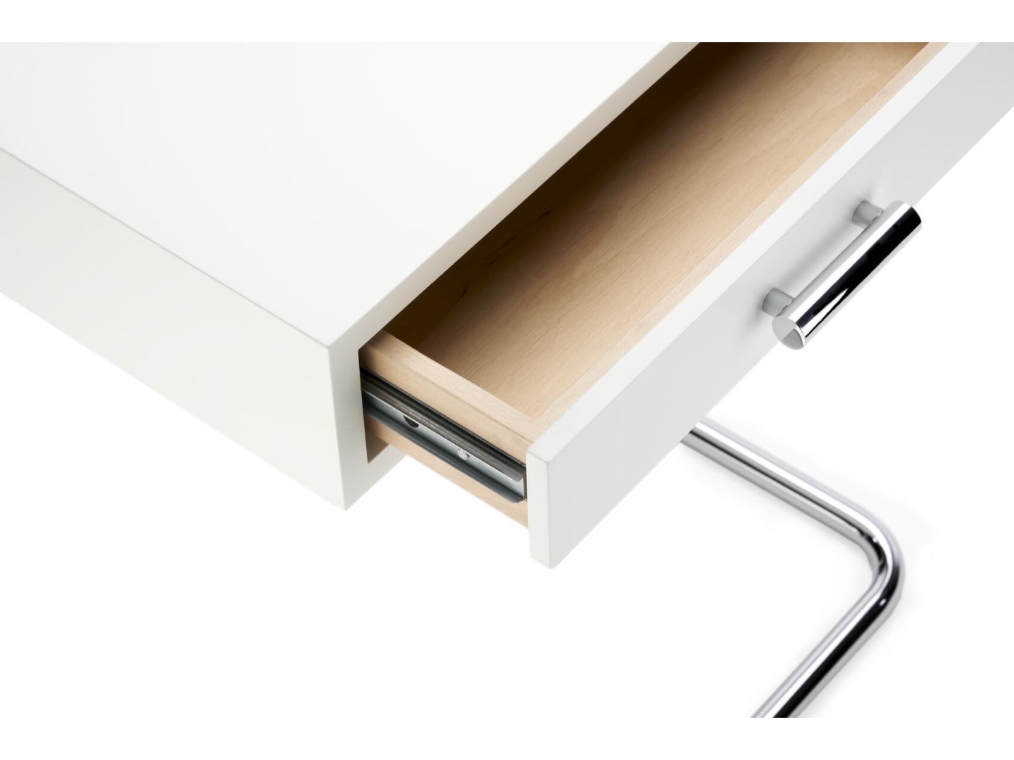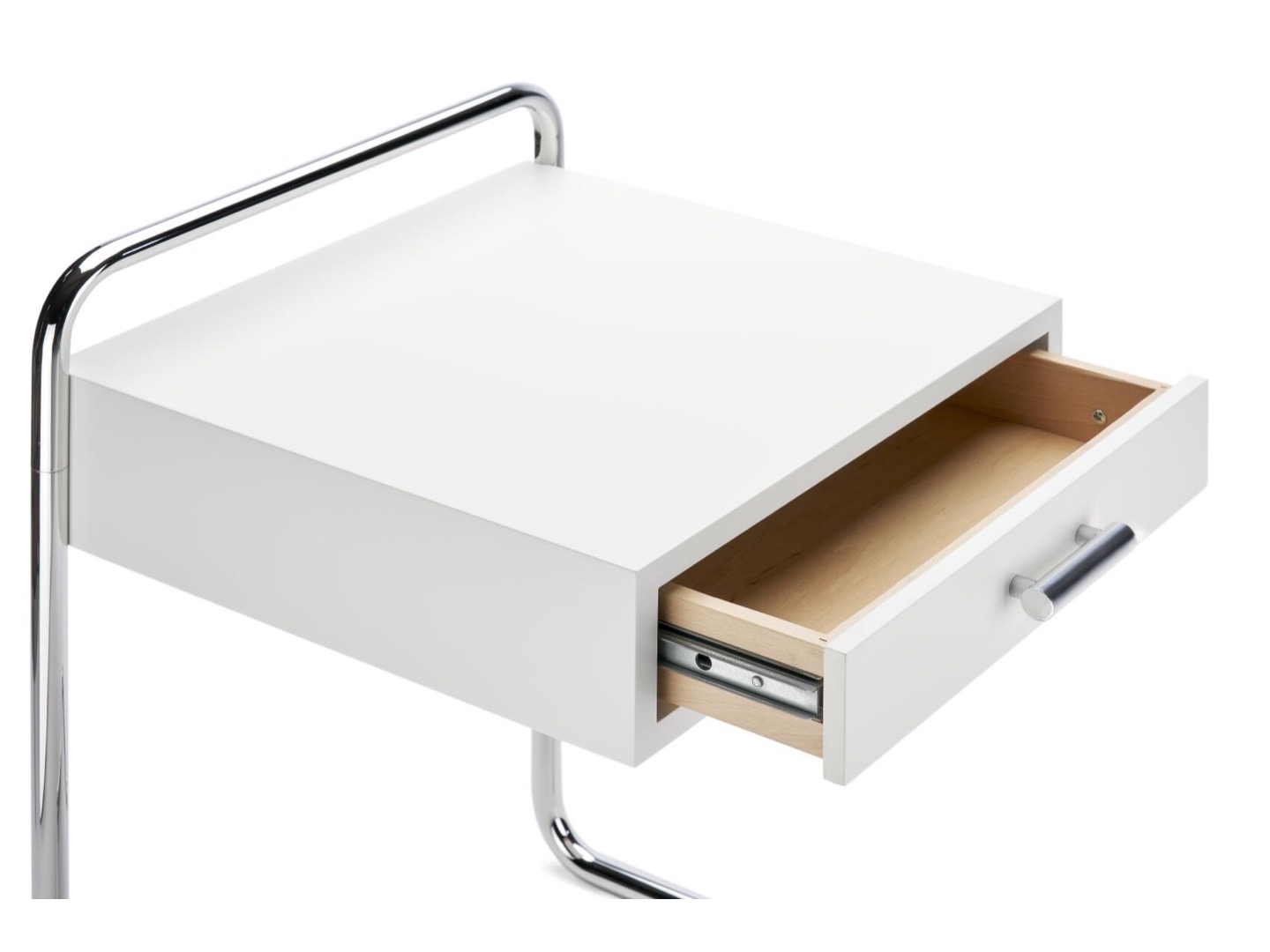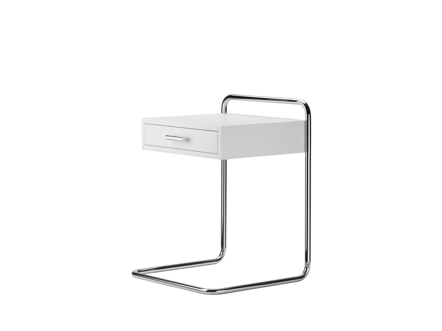 Ten mebel ma formalny design i dodatkowe zastosowanie: niski stolik z szufladą dobrze komponuje się obok łóżka lub szezlonga. Został zaprojektowany w taki sposób, aby można go było przeciągnąć przez krawędź łóżka, oszczędzając miejsce w ciągu dnia. Jest to klasyk zaprojektowany przez Thoneta w 1934 roku i od wielu lat jest nieodłączną częścią bogatej kolekcji mebli z rur stalowych, która obejmuje głównie projekty takich architektów jak Breuer, Mies van der Rohe i Stam.