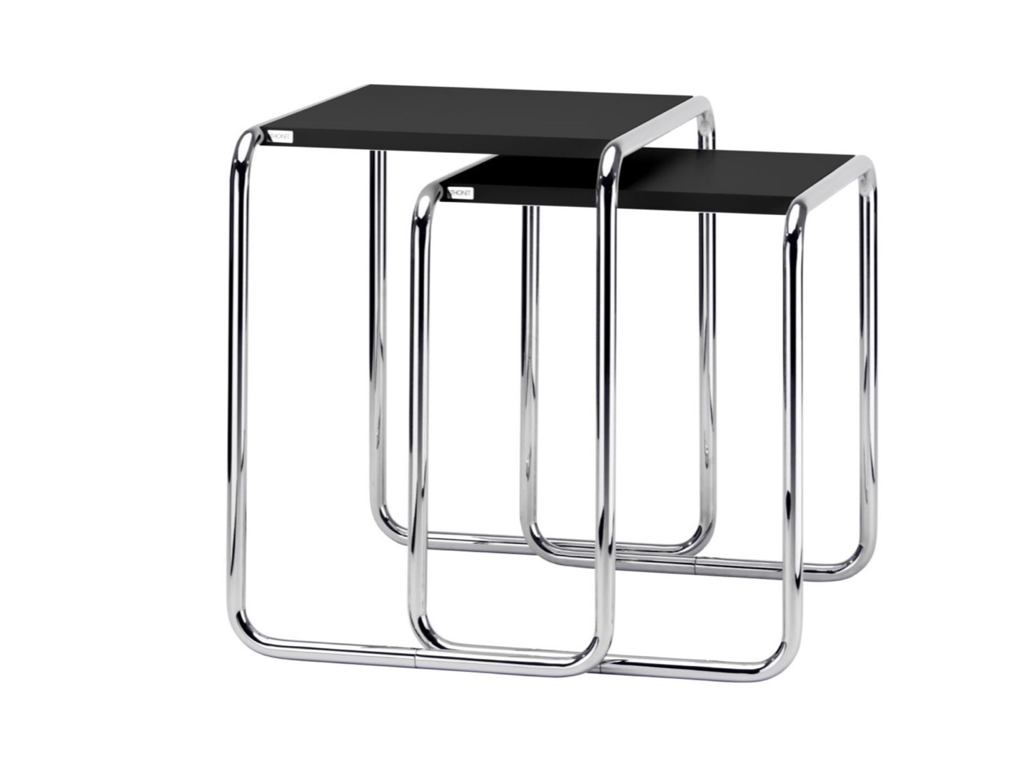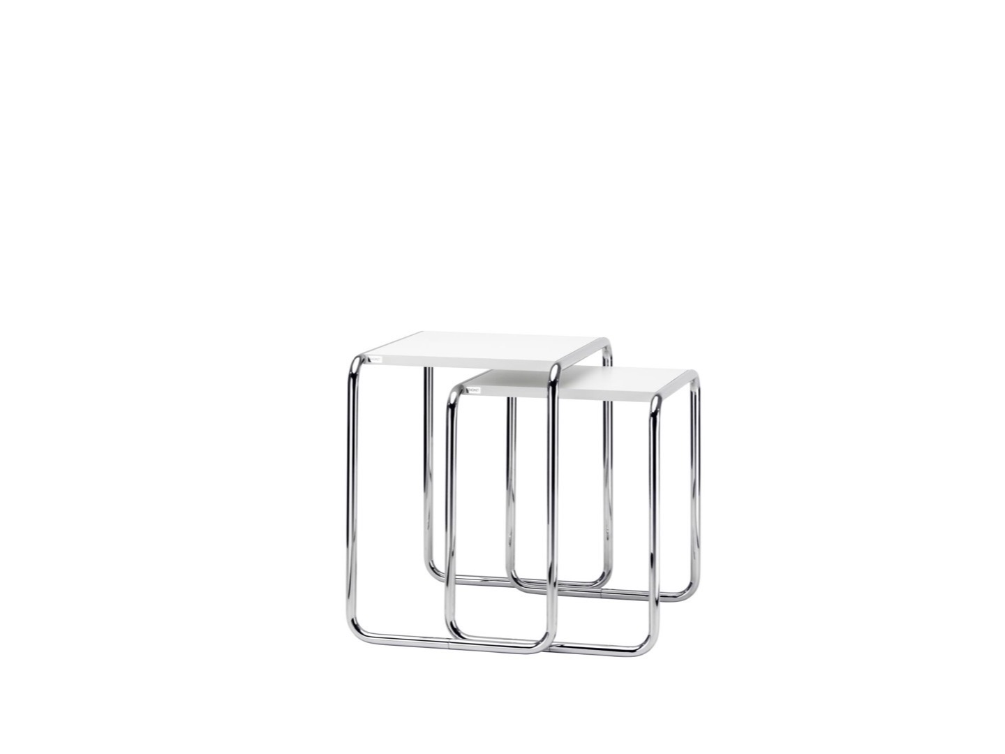 Technika giętego drewna, udoskonalona przez Michaela Thoneta, była źródłem inspiracji dla eksperymentów Marcela Breuera z giętymi rurami stalowymi. W oparciu o ten pomysł powstał czteroczęściowy zestaw stołów B 9. Stoliki można wykorzystać na wiele sposobów - jako stoliki boczne, jako praktyczne powierzchnie do przechowywania lub jako idealne miejsce na wazon ze świeżymi kwiatami. Po użyciu stołów można je łatwo wsunąć jeden pod drugi, oszczędzając miejsce. Cechą szczególną tej serii jest funkcjonalna prostota - zestaw stołowy składa się wyłącznie z chromowanych, giętych rur stalowych i blatów z prostokątnych paneli.