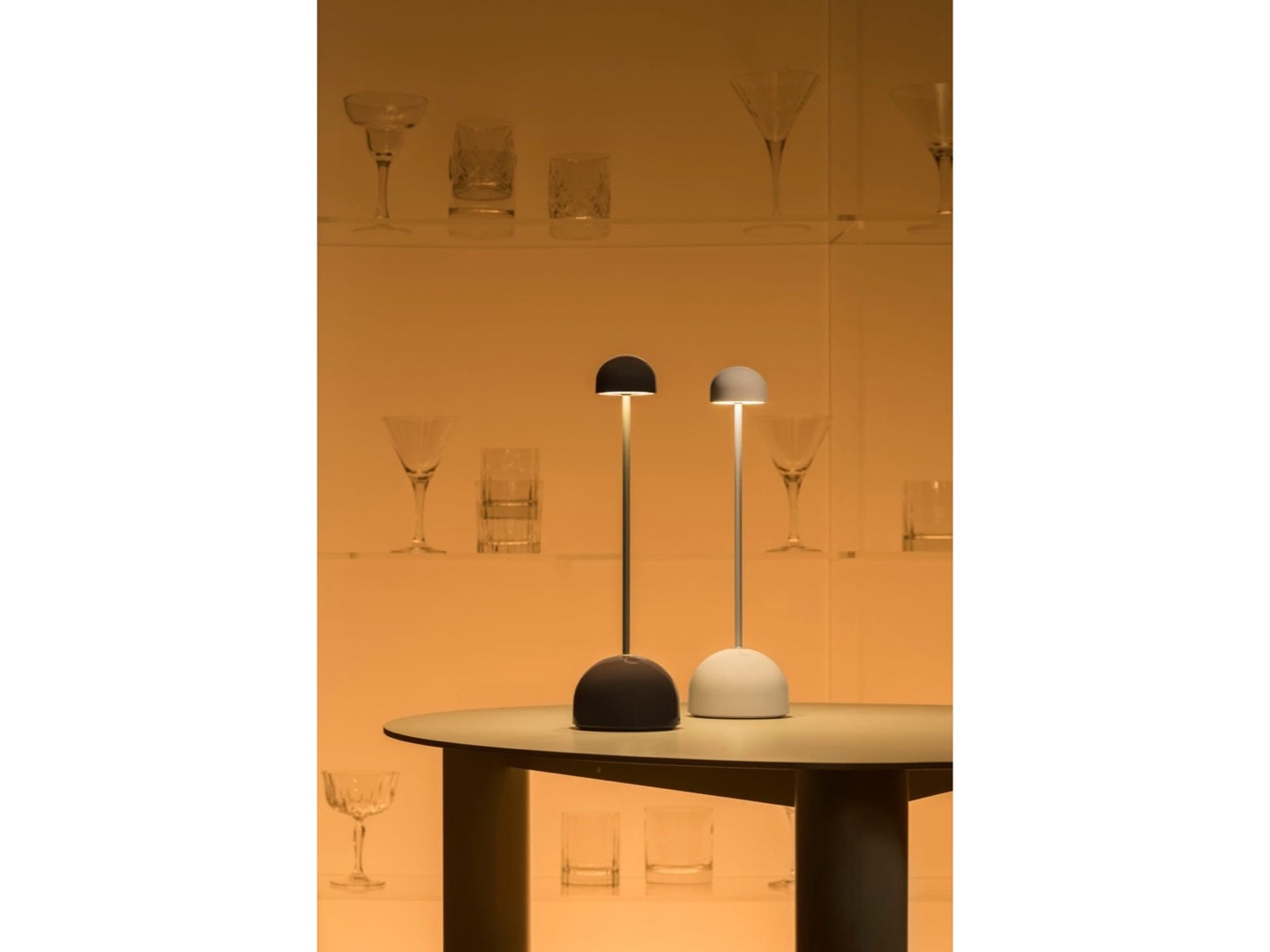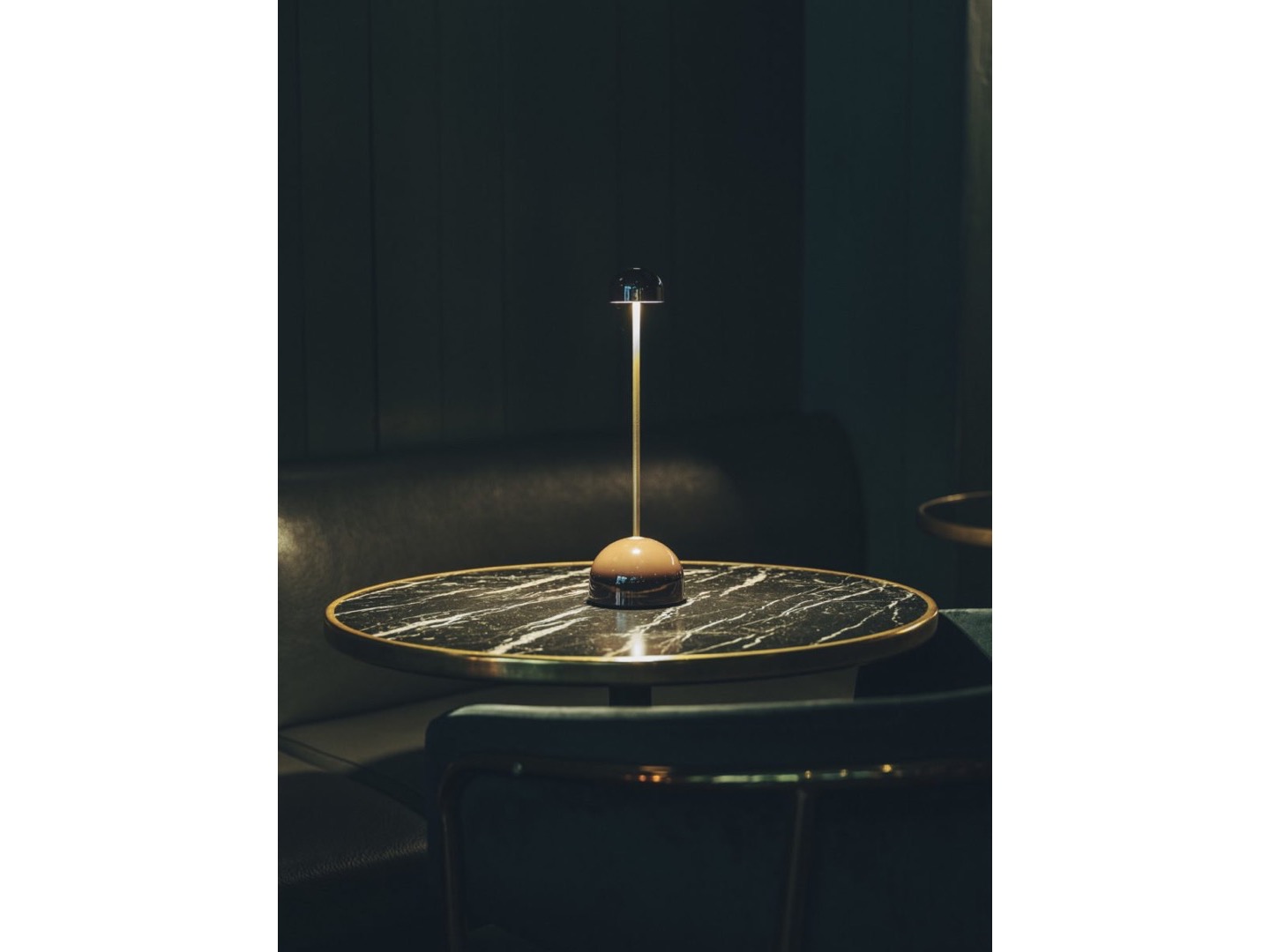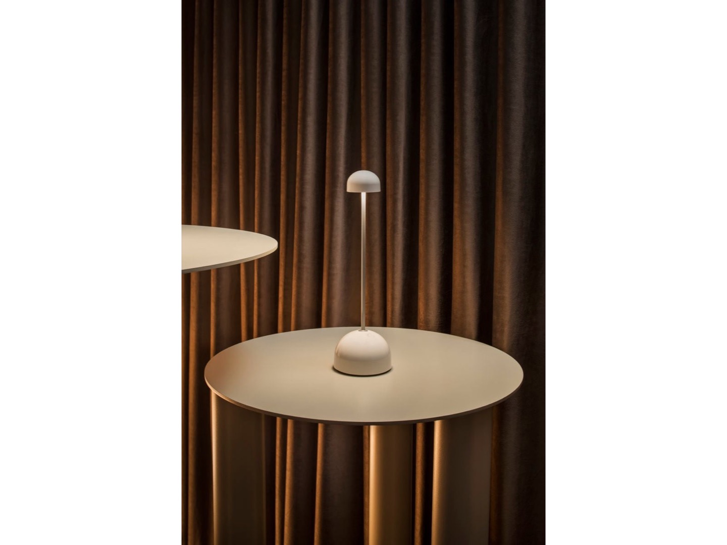 Pozbawiony kabli, lekki, o prostej konstrukcji i neutralnych kolorach, ten projekt staje się dyskretną częścią stołu, bez formalnych i chromatycznych ekscesów. Obiekt maksymalnie uproszczony, pozwalający na łatwe umiejscowienie i mobilność oraz zapewniający dobre oświetlenie restauracji, barów, koktajl barów, tarasów i patio.
