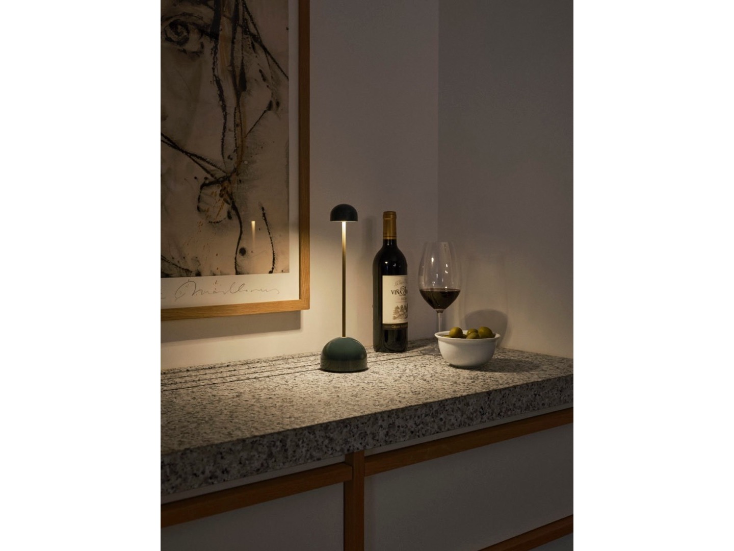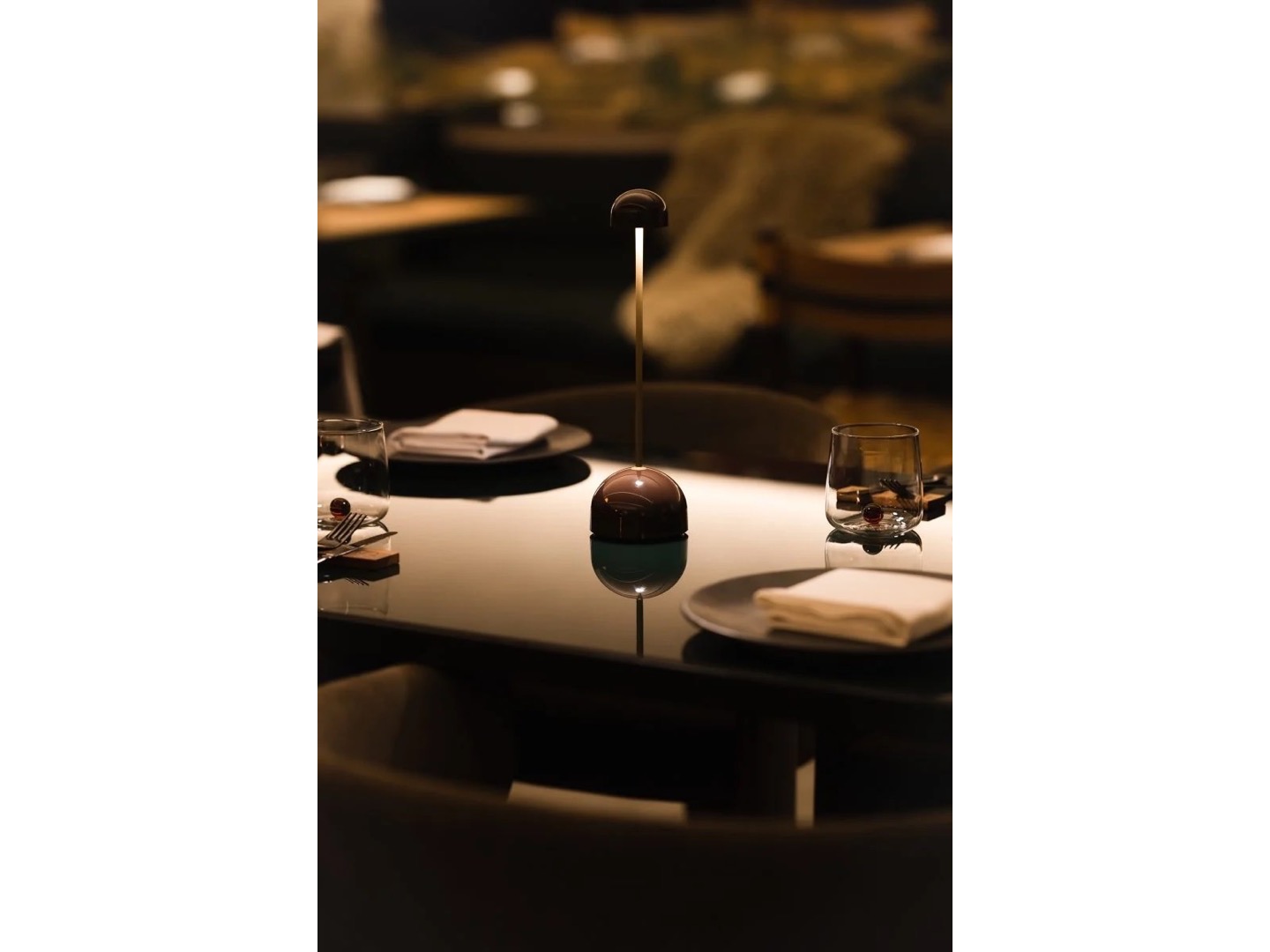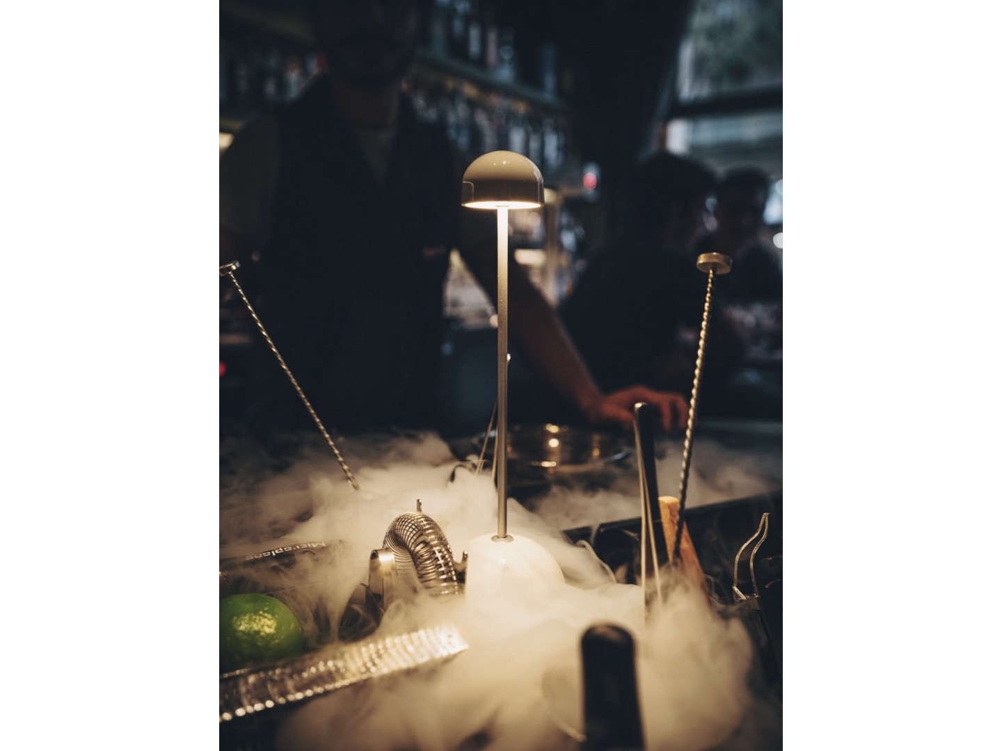 Pozbawiony kabli, lekki, o prostej konstrukcji i neutralnych kolorach, ten projekt staje się dyskretną częścią stołu, bez formalnych i chromatycznych ekscesów. Obiekt maksymalnie uproszczony, pozwalający na łatwe umiejscowienie i mobilność oraz zapewniający dobre oświetlenie restauracji, barów, koktajl barów, tarasów i patio.