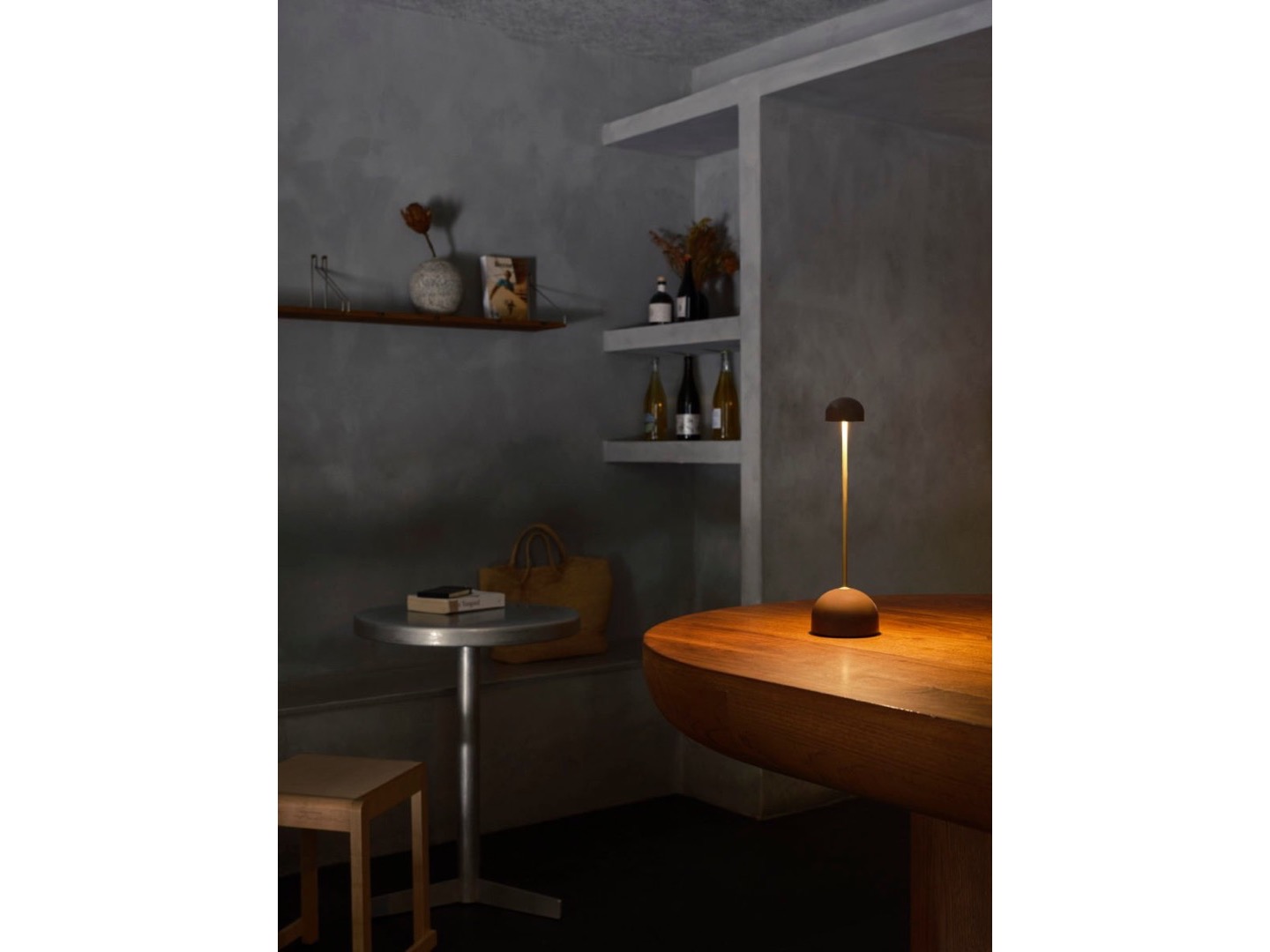 Dzięki małemu, nieprzezroczystemu kloszowi Sips oświetla stół bezpośrednio, ale bez oślepiania i przytłaczania przestrzeni. Szersza podstawa zapewnia stabilność i zawiera przełącznik dotykowy z trzema poziomami światła.