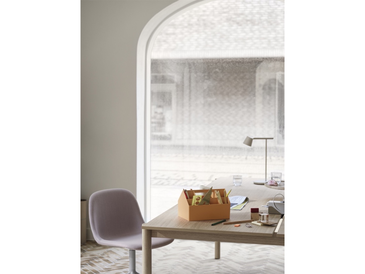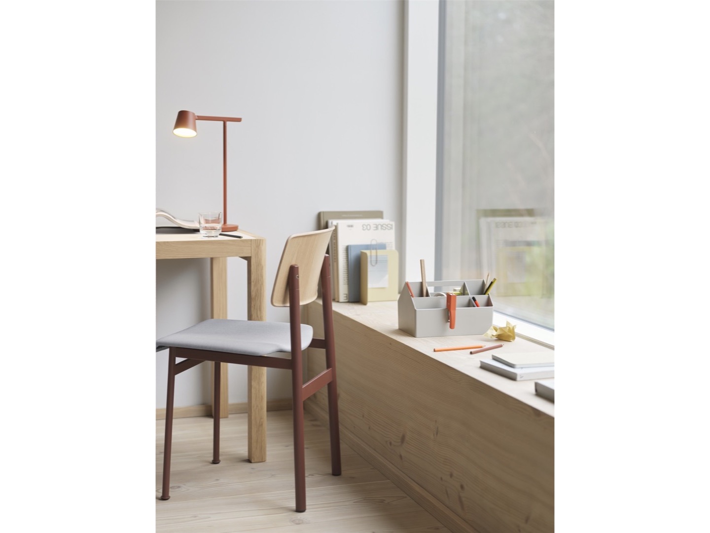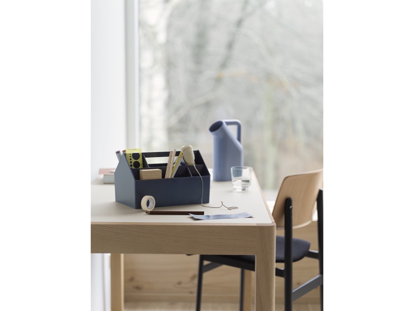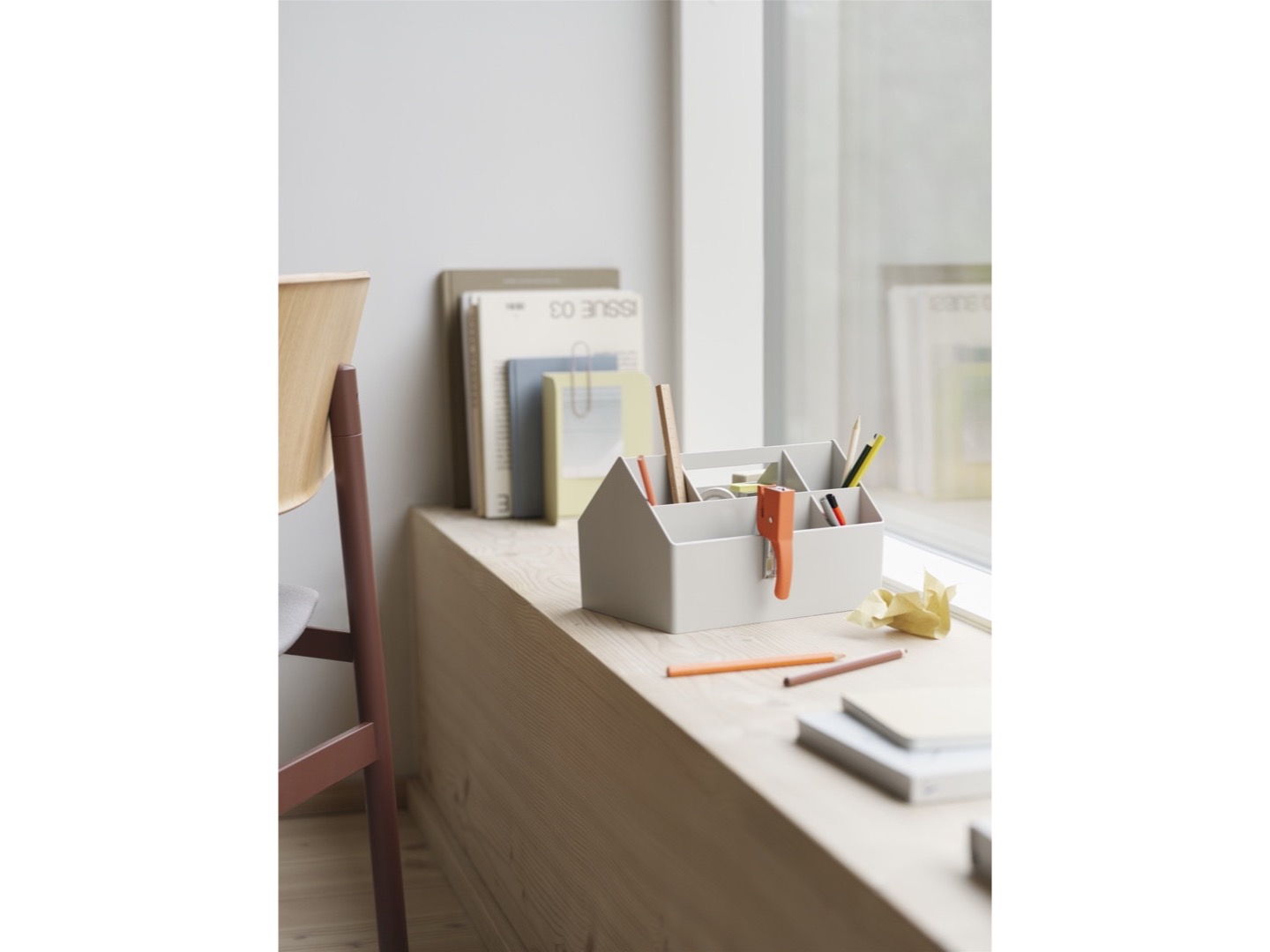 Dzięki funkcjonalnemu projektowi nawiązującemu do prostych linii architektonicznych domu, Sketch Toolbox oferuje różne przegrody, aby pomieścić wszystkie akcesoria. Odlany w jednym monolitycznym kawałku z uchwytem umożliwiającym przenoszenie. Można używać go w domu, w warsztacie lub nomadycznym miejscu pracy. Uniwersalna skrzynka narzędziowa jest produkowana w Danii przy użyciu co najmniej 91% plastiku pochodzącego z recyklingu.