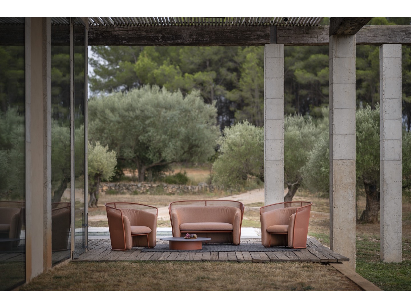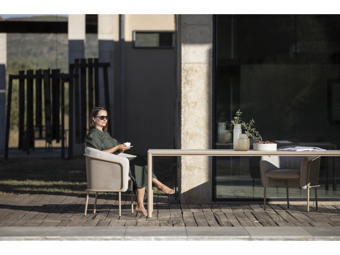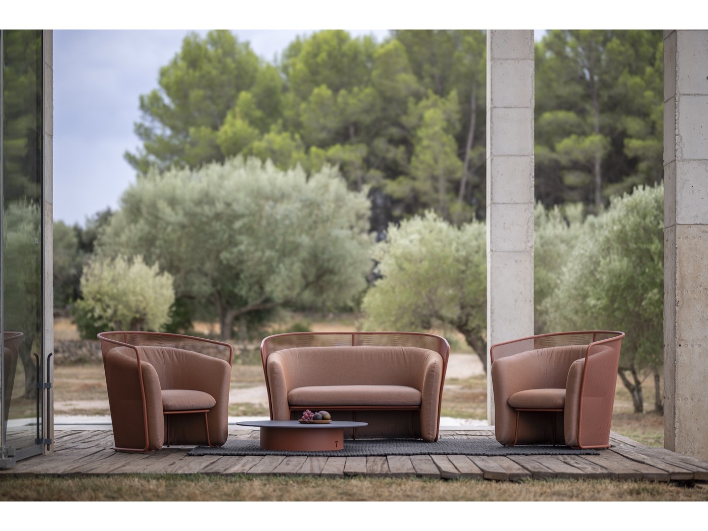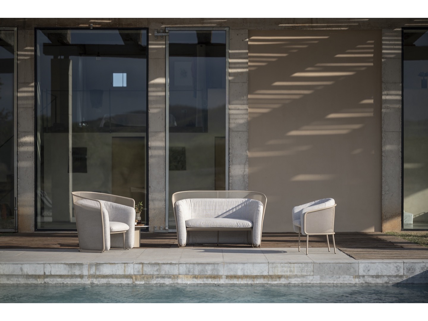 Kolekcja Slide zaprojektowana przez Lucie Koldová składa się z trzech elementów do siedzenia - krzesła do jadalni, krzesła klubowego i dwuosobowej sofy. Rama wszystkich elementów wykonana jest ze stali nierdzewnej malowanej proszkowo w połączeniu z bardzo wygodną tapicerką wykonaną z szybkoschnącej pianki i wysokiej jakości tkaniny outdoorowej.