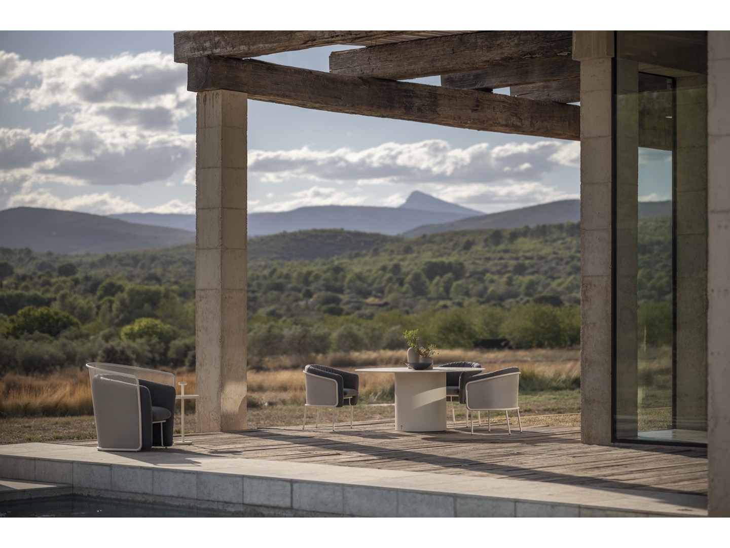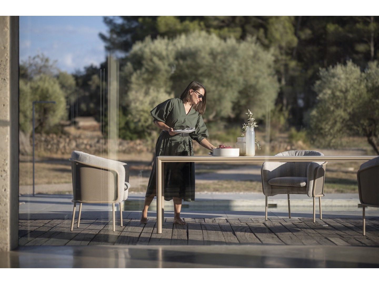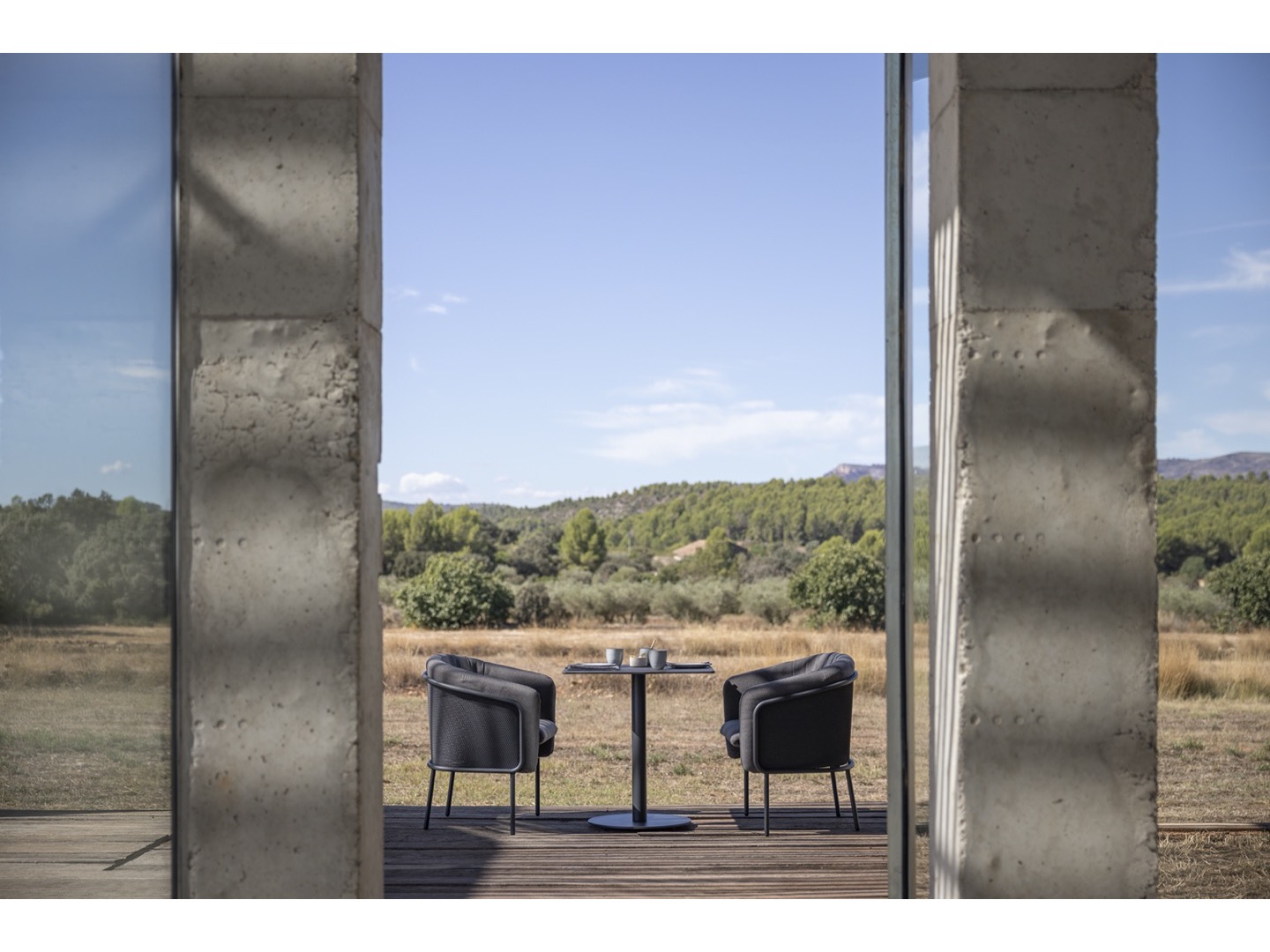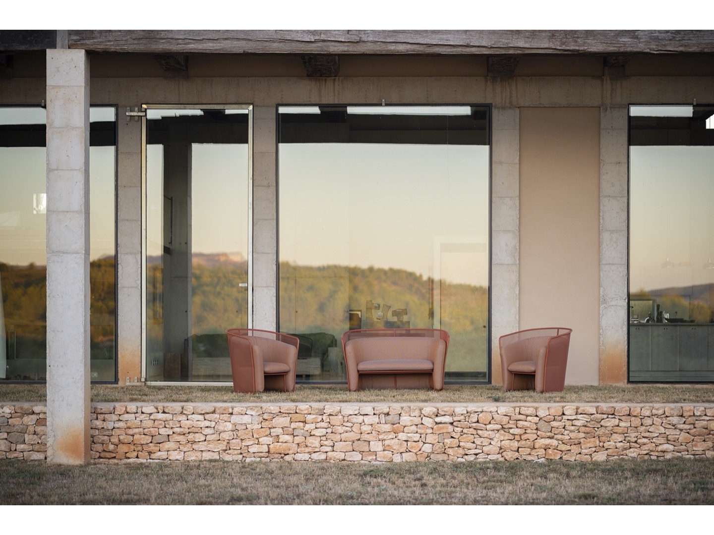 Kolekcja Slide zaprojektowana przez Lucie Koldová składa się z trzech elementów do siedzenia - krzesła do jadalni, krzesła klubowego i dwuosobowej sofy. Rama wszystkich elementów wykonana jest ze stali nierdzewnej malowanej proszkowo w połączeniu z bardzo wygodną tapicerką wykonaną z szybkoschnącej pianki i wysokiej jakości tkaniny outdoorowej.