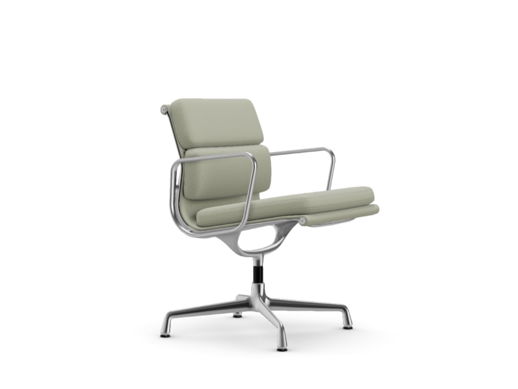 Charles & Ray Eames, 1969. Porównanie tego krzesła do Aluminium Chair jest jak najbardziej na miejscu. Podobnie jak w tych drugich aluminiowy profil, który stanowi prostą konstrukcję, jest niezwykle elegancki i wygodny, a dodatkowe poduszki którymi wyłożone jest siedzisko i oparcie dostarczają jeszcze większej wygody. Baza chromowana lub polerowane aluminium.