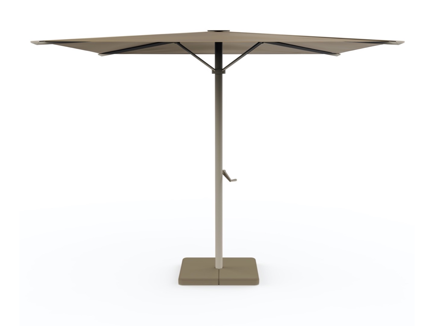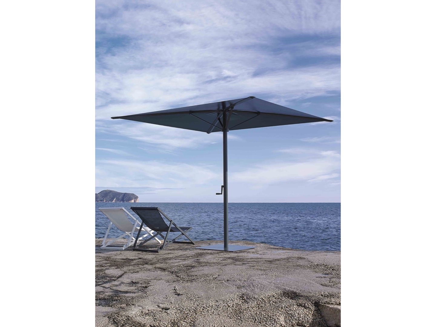 Parasol BALI to designerski parasol wykonany z ocynkowanej stalowej podstawy i termolakierowanych profili aluminiowych, dostępnych w kolorze białym, jasnoszarym, butelkowej zieleni, piaskowym, brązie, czerwieni i antracytowym. Gra pomiędzy różnymi wykończeniami, kolorami tkaniny i strukturą zachęca do dostosowania jej do własnych potrzeb.