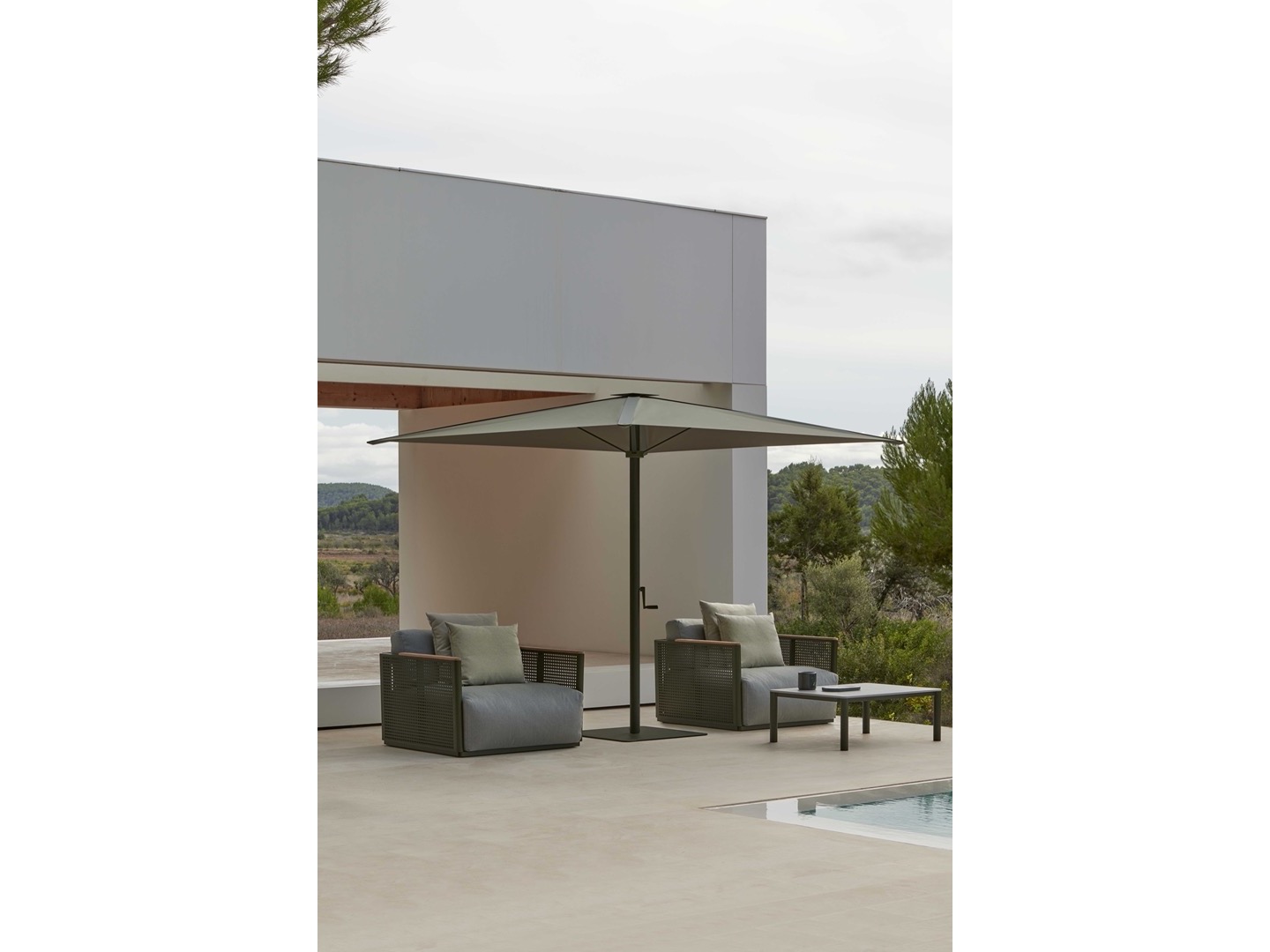 Parasol o stonowanym i współczesnym designie, inspirowany strzechą tradycyjnej balijskiej architektury i jej symbolicznym związkiem z krajobrazem. Prostota jego konstrukcji sprawia, że jest naturalnym przedłużeniem każdego tarasu.