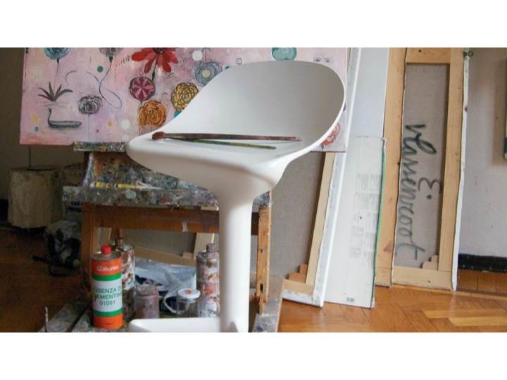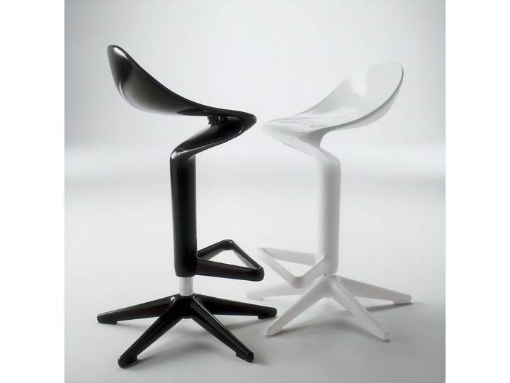 Oryginalny stołek o giętkim kształcie. To giętkie i wygodne krzesło ma siłownik gazowy regulujący wysokość siedziska. Regulacja jest ukryta i bardzo dyskretna. Wysokość siedziska waha się między 56 a 76 cm.