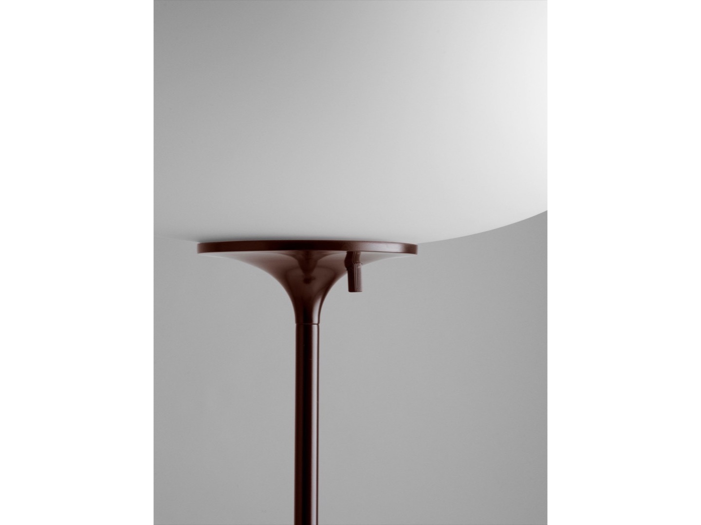 Delikatny blask kuli z matowego szkła tworzy klimat, który dopełnia zarówno nowoczesne, jak i tradycyjne wnętrza. Pod kulą znajduje się prosty obrotowy wyłącznik ściemniacza, zapewniający intuicyjną kontrolę natężenia światła. Prosta, smukła noga przypominająca tulipan jest dostępna w kolorach Black Chrome, Red Black i Pebble Grey.