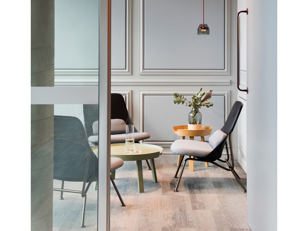 Strain Low Chair to hybryda krzesła i fotela. Został zaprojektowany jako krzesło, które z łatwością wkomponuje się w mniejsze wnętrza, ale jednocześnie zapewni komfort fotela.