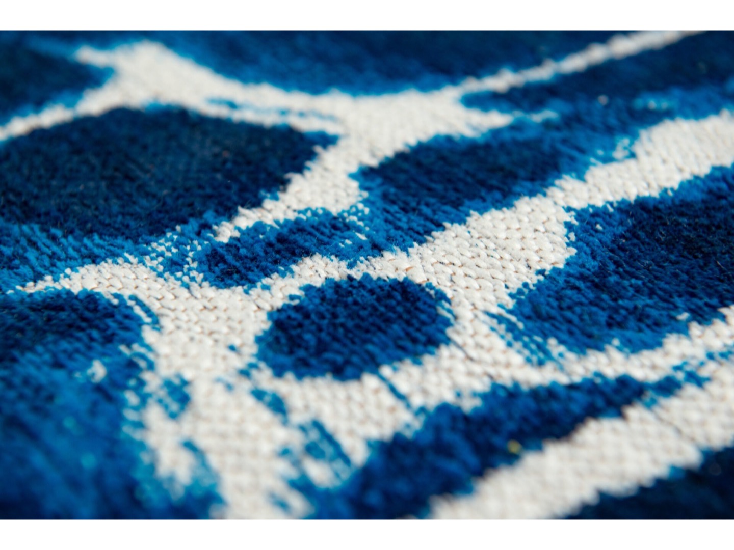 Abstrakcyjny Niebieski Dywan – SWIM SURF 9351, cenionej belgijskiej marki Louis De Poortere, z kolekcji Meditation.