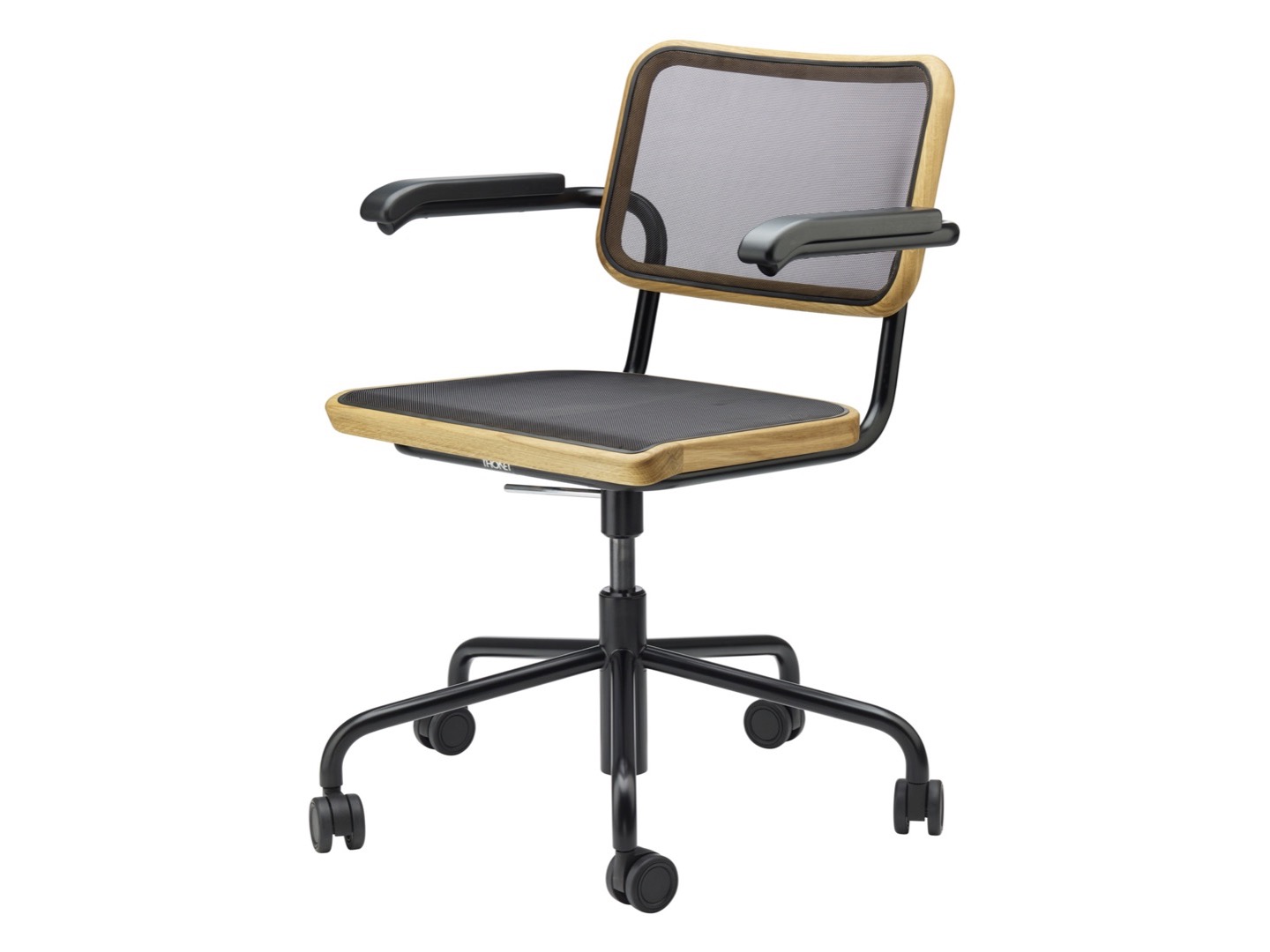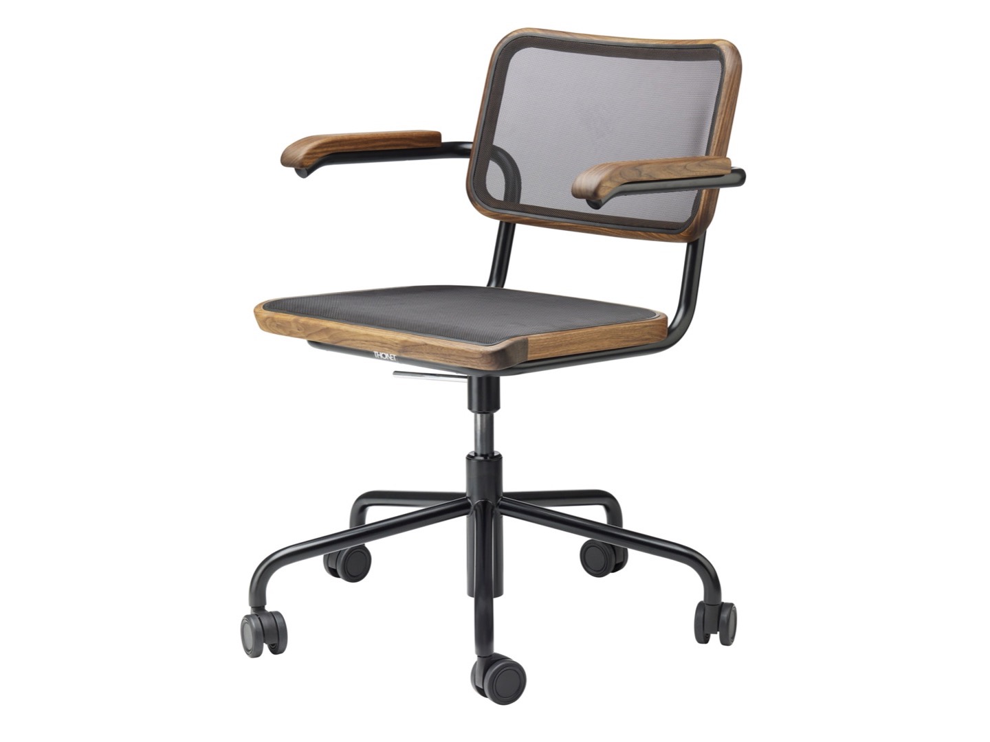 Wśród modeli mebli Tonet wykonanych na bazie ze stalowych rur, krzesło biurowe S 64 jest szczególnie wszechstronne. Idealnie sprawdzi się w każdym wnętrzu dzięki swojemu nietypowemu designowi. Krzesło S 64 z to jeden z najbardziej znanych klasyków. Atrakcyjne połączenie nowego i starego projektu przyczynia się do ich popularności: tradycja Thoneta w produkcji mebli z giętego drewna z charakterystyczną wikliną wiedeńską, w przeciwieństwie do zastosowania rur stalowych. Siedzisko i oparcie reprezentują tradycję, a rama teraźniejszość i przyszłość. Dzięki swojej wszechstronności stały się najlepiej sprzedającymi się krzesłami wspornikowymi. Marcel Breuer zaprojektował S 32 i S 64 podczas swojego pobytu w Berlinie w 1928 roku. Thonet produkuje oba modele od 1930 roku. Ze względu na ich estetykę i przejrzystość w połączeniu z przewiewną plecionką, klasyki pasują do najróżniejszych środowisk, od sal konferencyjnych i poczekalni do restauracji i domów prywatnych.