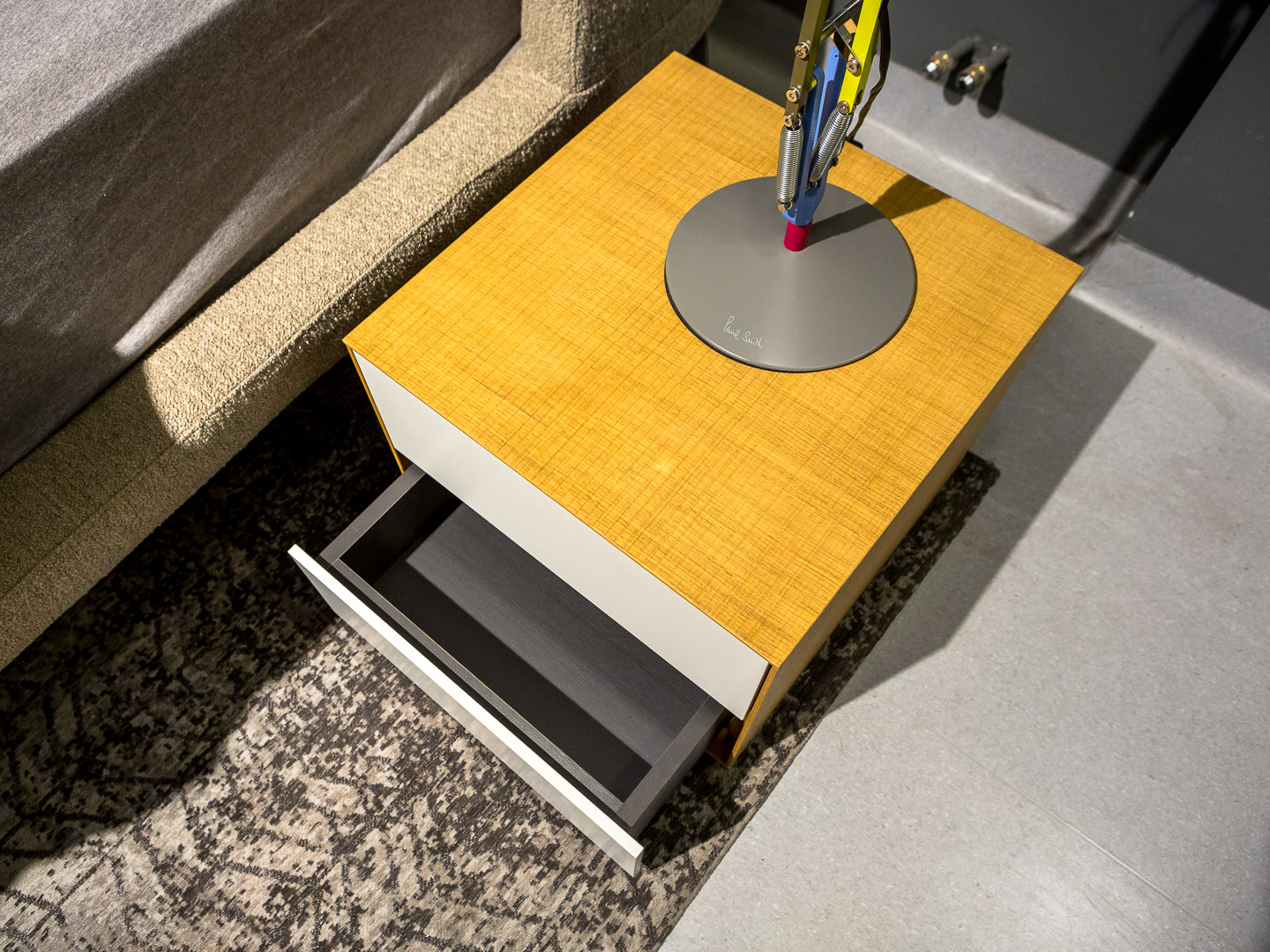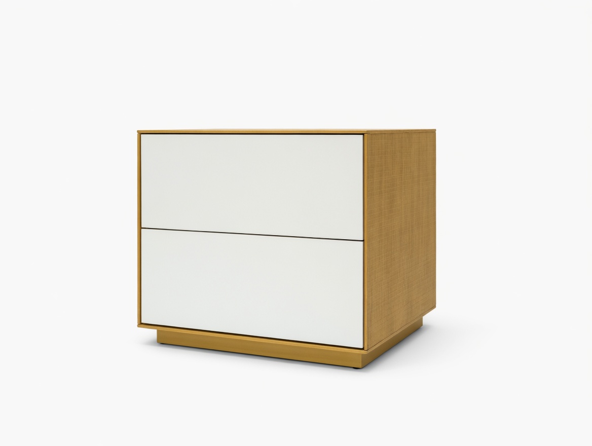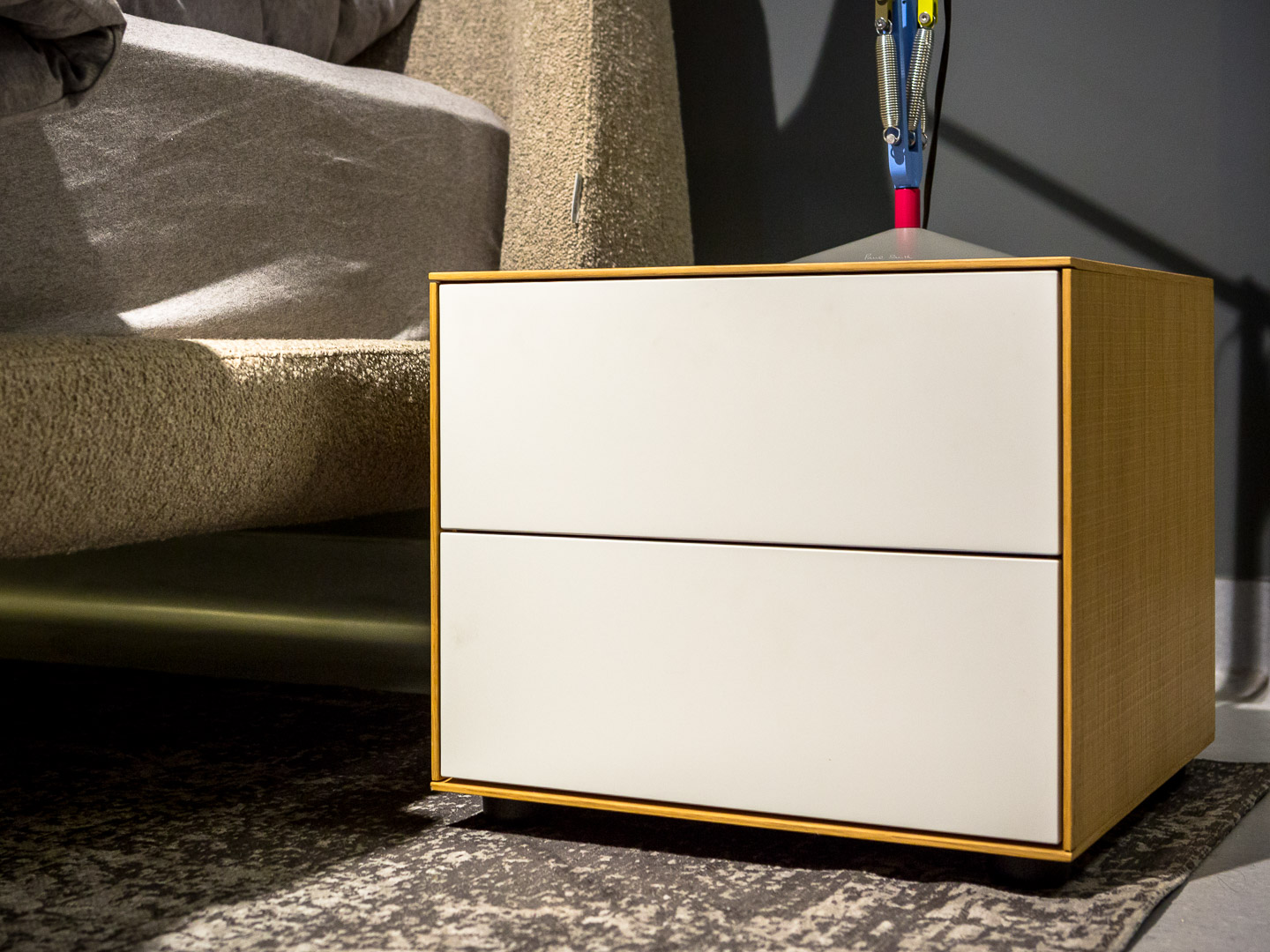 Szafka nocna do sypialni z kolekcji Lauki. Dwie pojemne szuflady otwierane automatycznie po naciśnięciu. Nowoczesny wygląd, prosta forma, wysoka funkcjonalność. Lauki to wyjątkowa gama komód i szafek oraz stolików nocnych, w których można zaaranżować nieskończone konfiguracje pod względem rozmiarów, kształtów i wykończeń. Elementy identyfikujące kolekcję to wąski (0,5 cm) profil okalający obwód szafki oraz system push-to-open w szufladach. Asortyment doskonale komponuje się z każdym salonem lub sypialnią Treku.