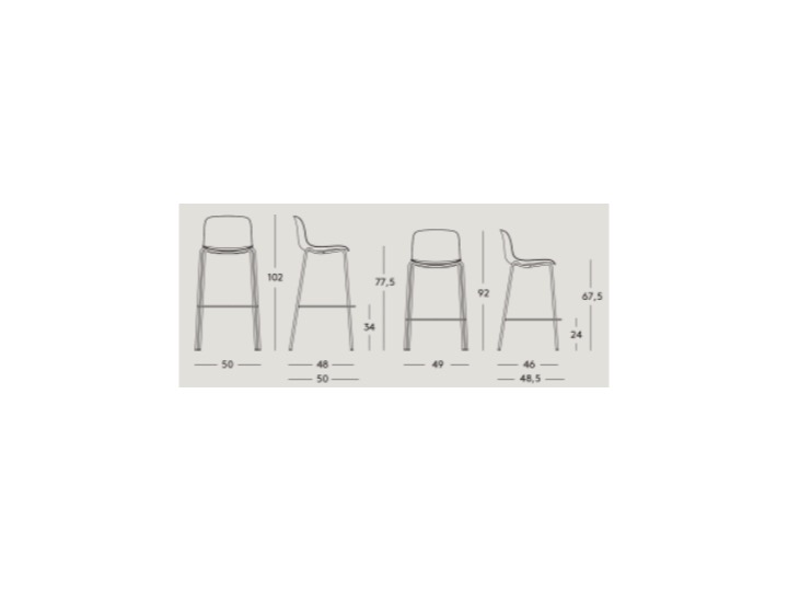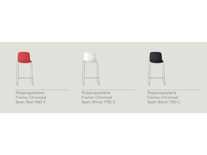 Wybieraj spośród dwóch wysokości siedziska; dwóch wykończeń podstaw- chrom lub malowana; trzech kolorów siedziska. Prezentowane hockery mają 4 nogi i można je sztaplować dzięki czemu zajmą mniej miejsca.