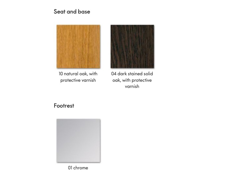 Stołek wykonany jest z drewna dębowego w kolorze naturalnym lub przyciemnione.