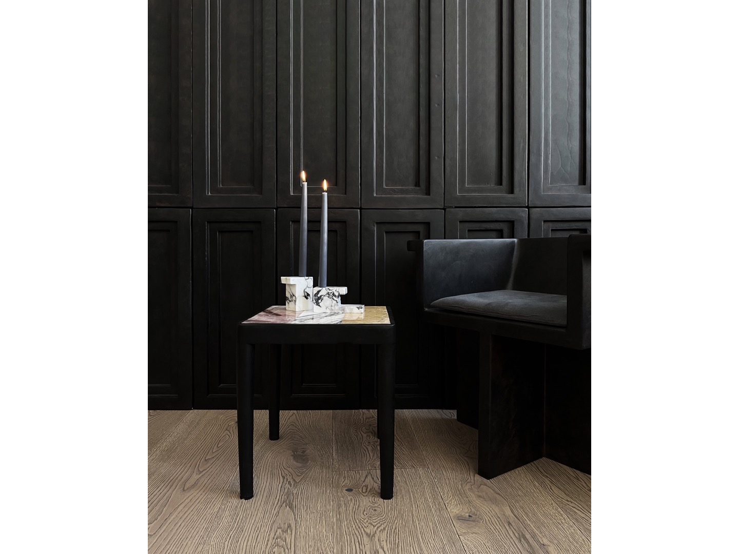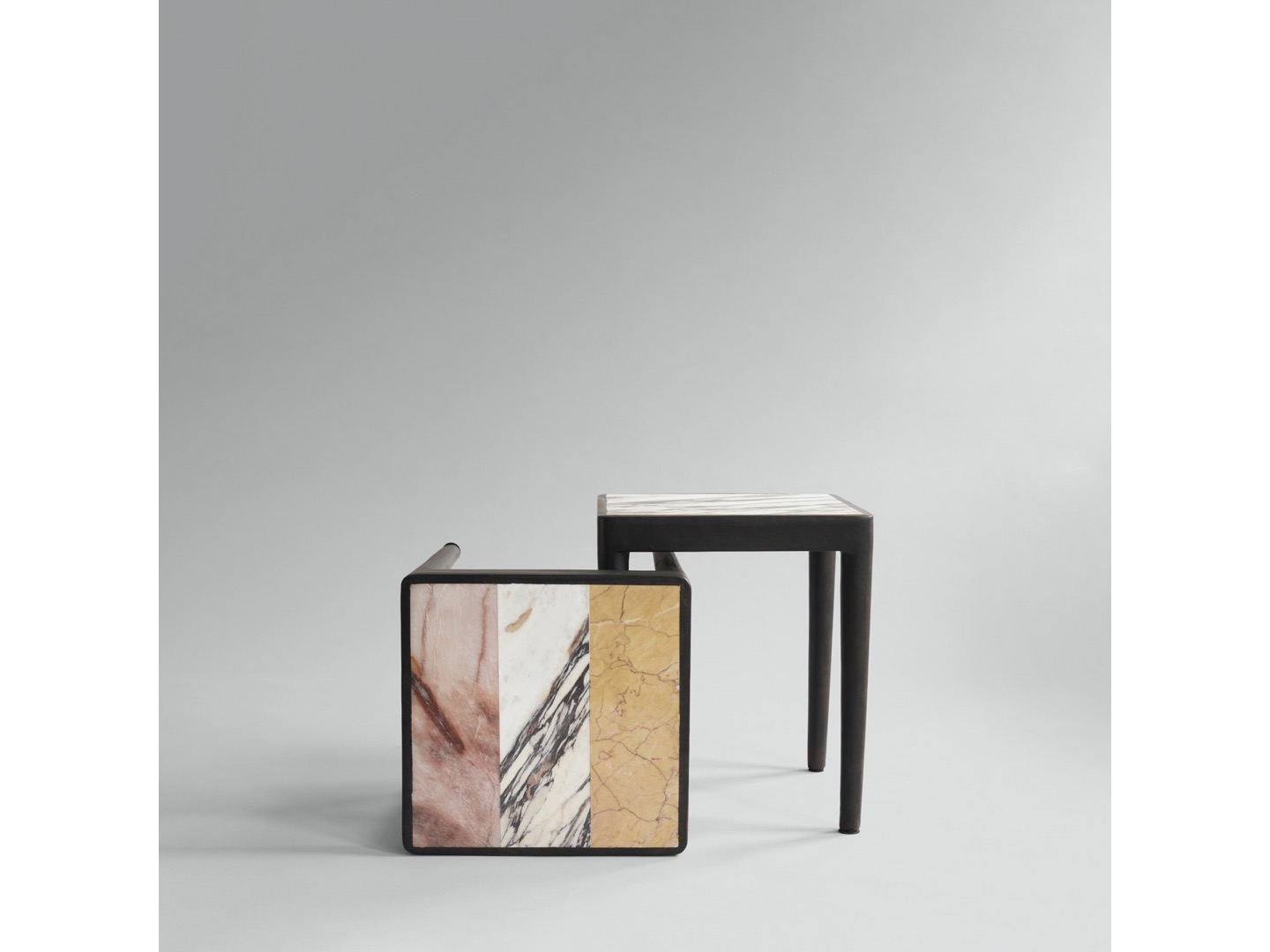 Tairu, japońskie słowo oznaczające płytki, które były inspiracją do stworzenia tego projektu. Stoły są dostępne w dwóch wersjach: Calacatta oraz wersja wykonana z trzech rodzajów marmuru, Peach Wind, Calacat ta Violet i Valencia Yellow, wszystkie płytki są zamontowane w ramie stołu z betonu włóknistego. Każdy stół jest wyjątkowy, ze względu na naturalne różnice kolorystyczne i wzory w marmurze.