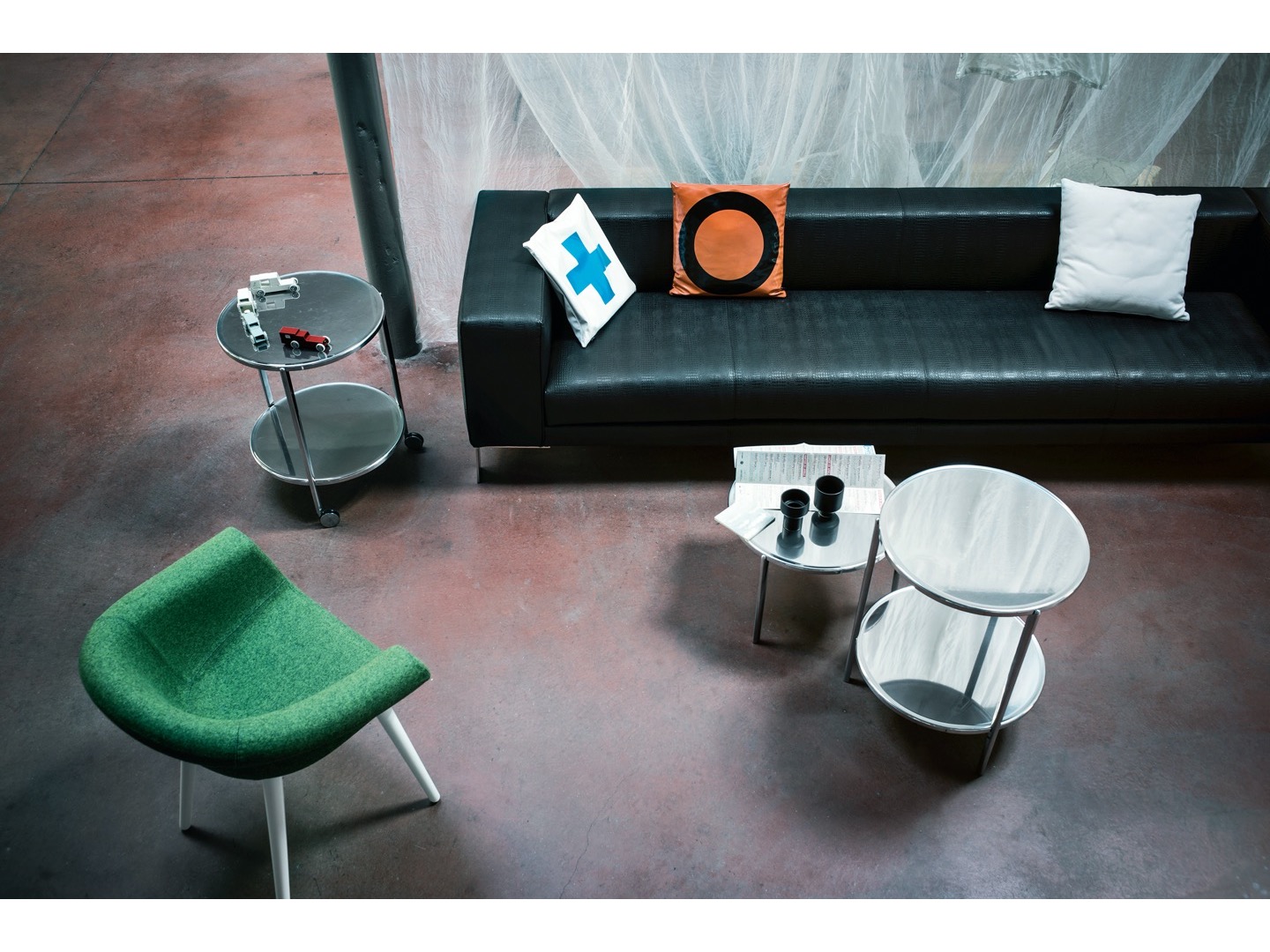 Tambour to seria stolików z ramą wykonaną z polerowanego i odlewanego ciśnieniowo aluminium. Dostępne są w różnych wymiarach.