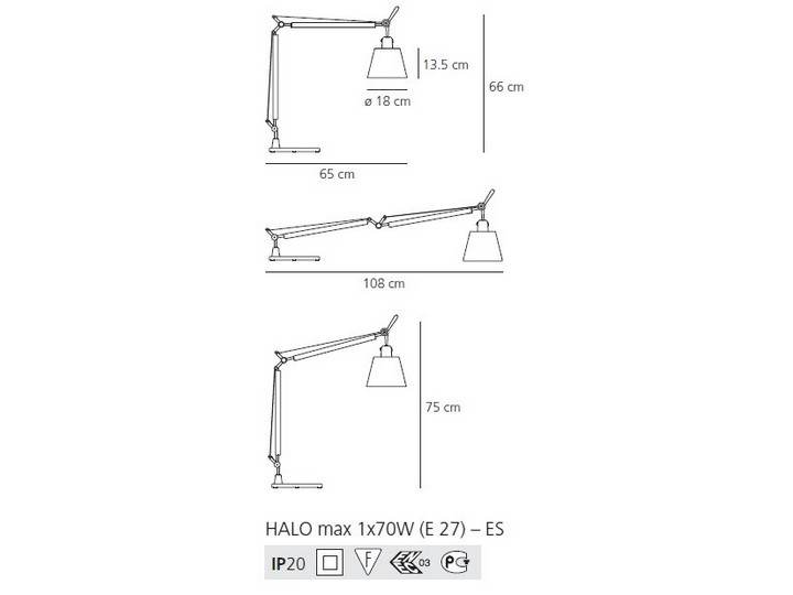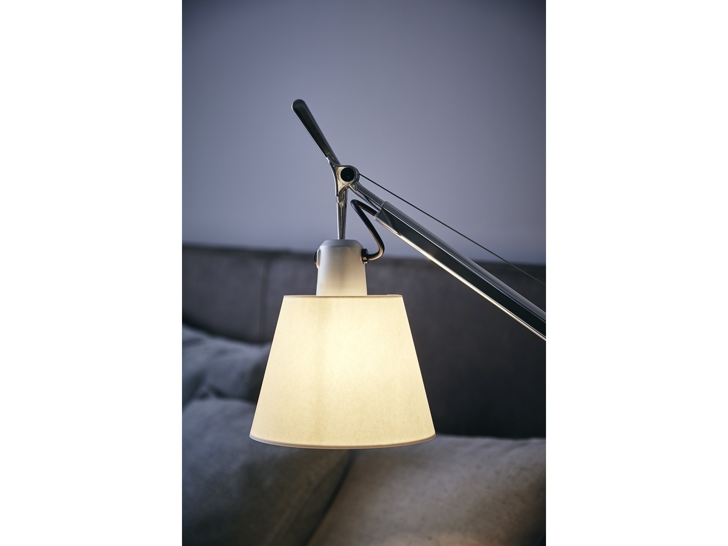 Lampa Tolomeo Basculante składa się z dość ciężkiej podstawy, dwóch ramion połączonych przegubami z mechanizmem napinającym stalowe linki pozwalającymi ustawić lampę w dowolnej pozycji i pergaminowego lub satynowego abażuru. Ramiona lampy wykonano z polerowanego aluminium. Całość można dowolnie wyginać, dzięki czemu lampa oświetla dokładnie to co chcemy. Mechanizm Tolomeo Basculante pozostał nieosłonięty, czyniąc wygląd lampki zdecydowanie industrialny i kosmiczny.