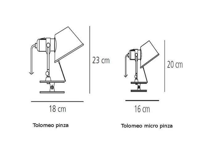 Lampa Tolomeo Pinza to lampa na klipsie. Do klipsa dołączone są dwa ramiona połączone przegubami z mechanizmem napinającym stalowe linki pozwalającymi ustawić lampę w dowolnej pozycji. Ramiona lampy wykonano aluminium. Całość można dowolnie wyginać, dzięki czemu lampa oświetla dokładnie to co chcemy. Mechanizm Tolomeo pozostał nieosłonięty, czyniąc wygląd lampki zdecydowanie industrialny i kosmiczny.