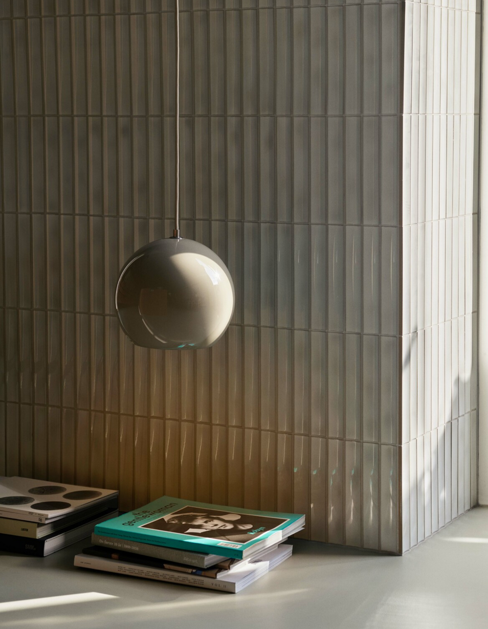 Zaprojektowana w 1959 roku lampa wisząca Topan była drugim projektem Pantona i jego pierwszą lampą produkowaną masowo – później pojawiła się lampa Flowerpot. Kultowy projekt o rzeźbiarskiej sylwetce, kulisty kształt nadaje charakteru zarówno pojedynczo, jak i w zestawach, zapewniając skupione światło w jadalniach, kuchniach i korytarzach.