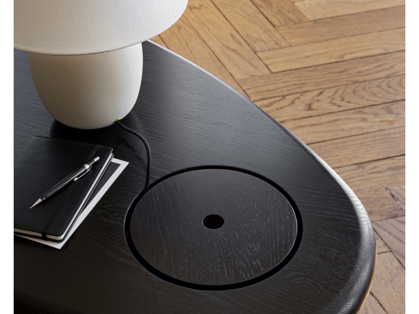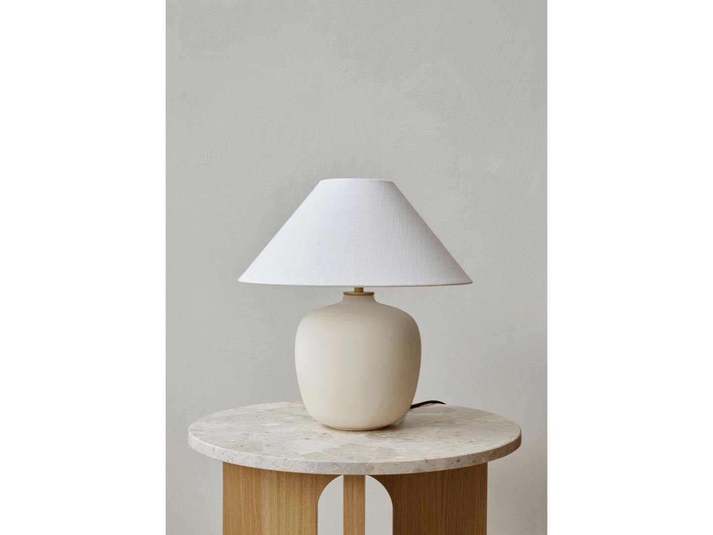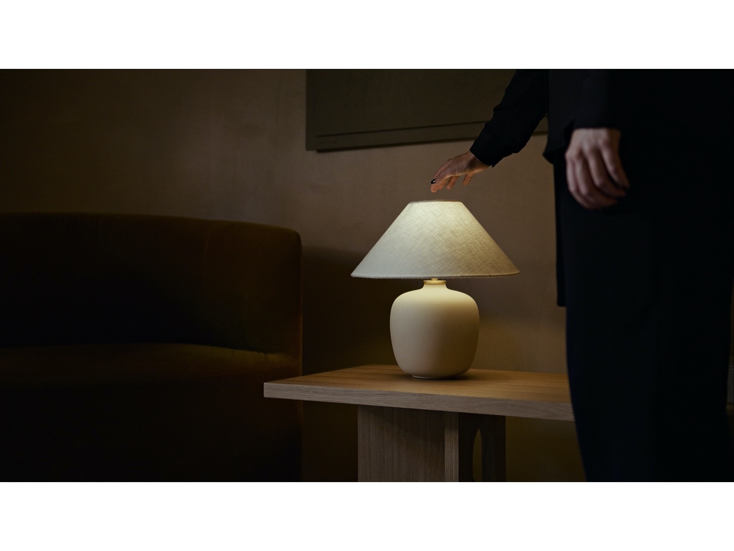 Lampa stołowa Torso firmy Krøyer-Sætter-Larsen, zaprojektowana została z ponadczasowym wyglądem, który nadaje się do każdego ustawienia. Podstawa odlana z czarnej glazurowanej kamionki i wydłużona dla subtelnego, ale rzeźbiarskiego wyrazu. Ściemniacz dotykowy z mosiądzu pozwala na indywidualne ustawienie intensywności światła.
