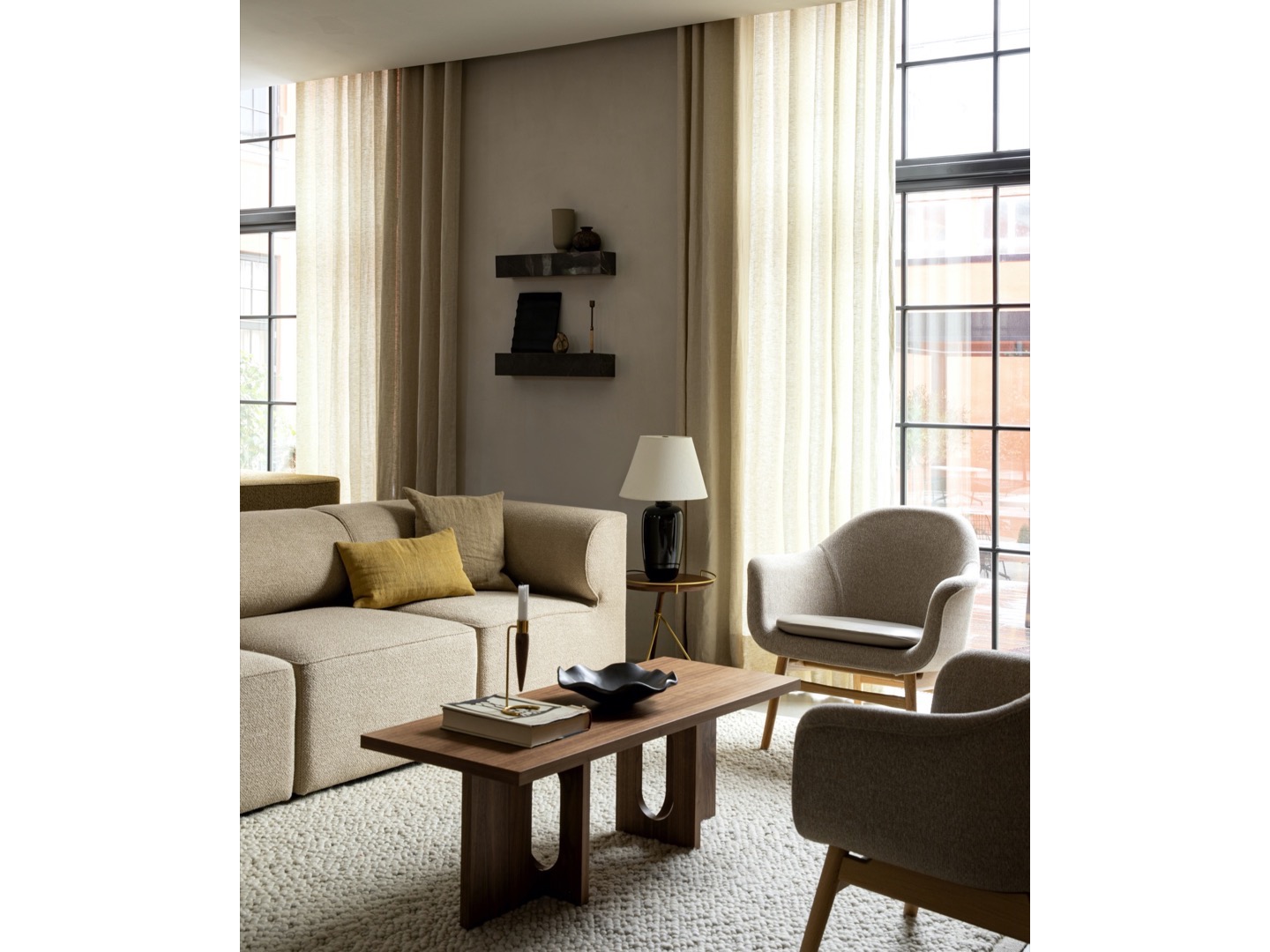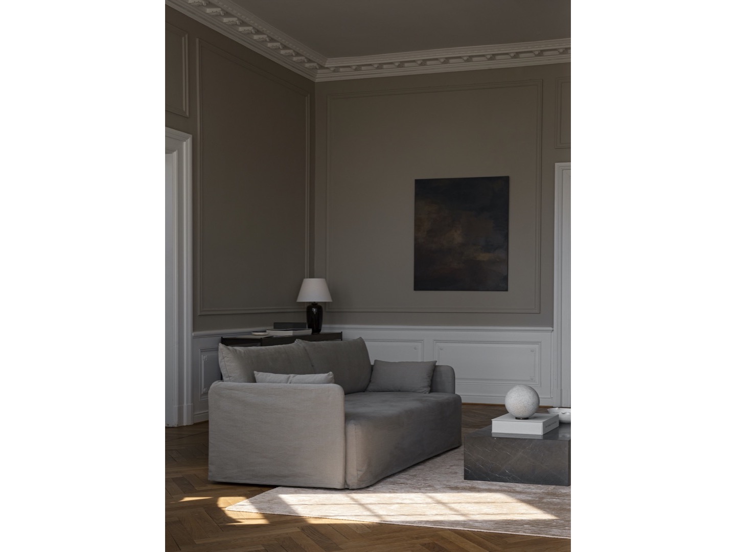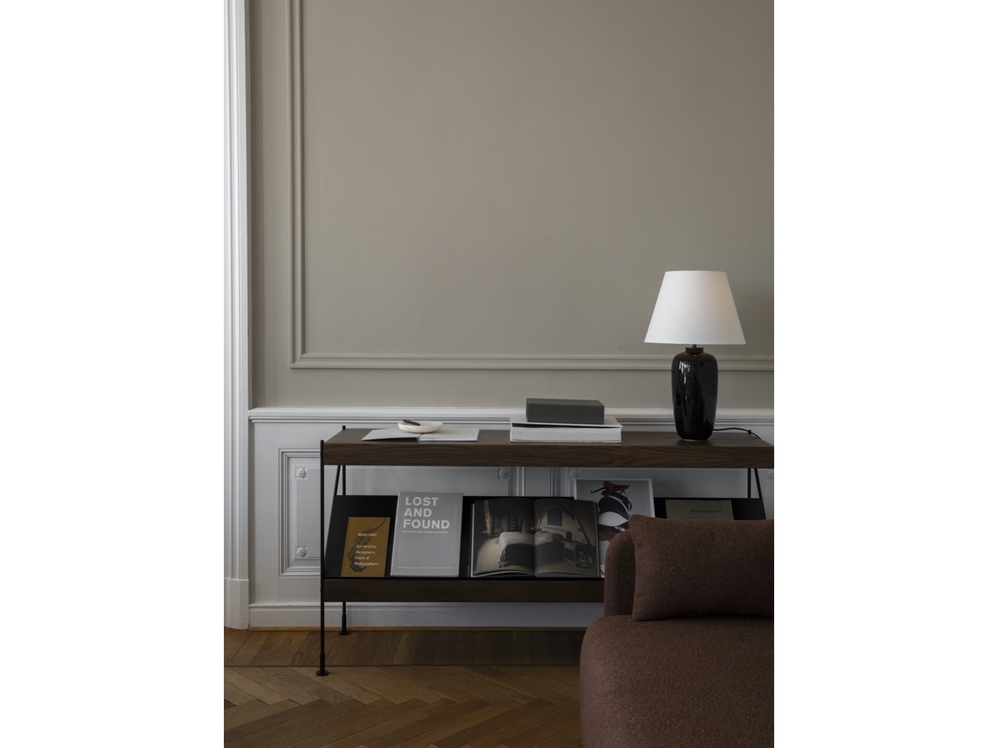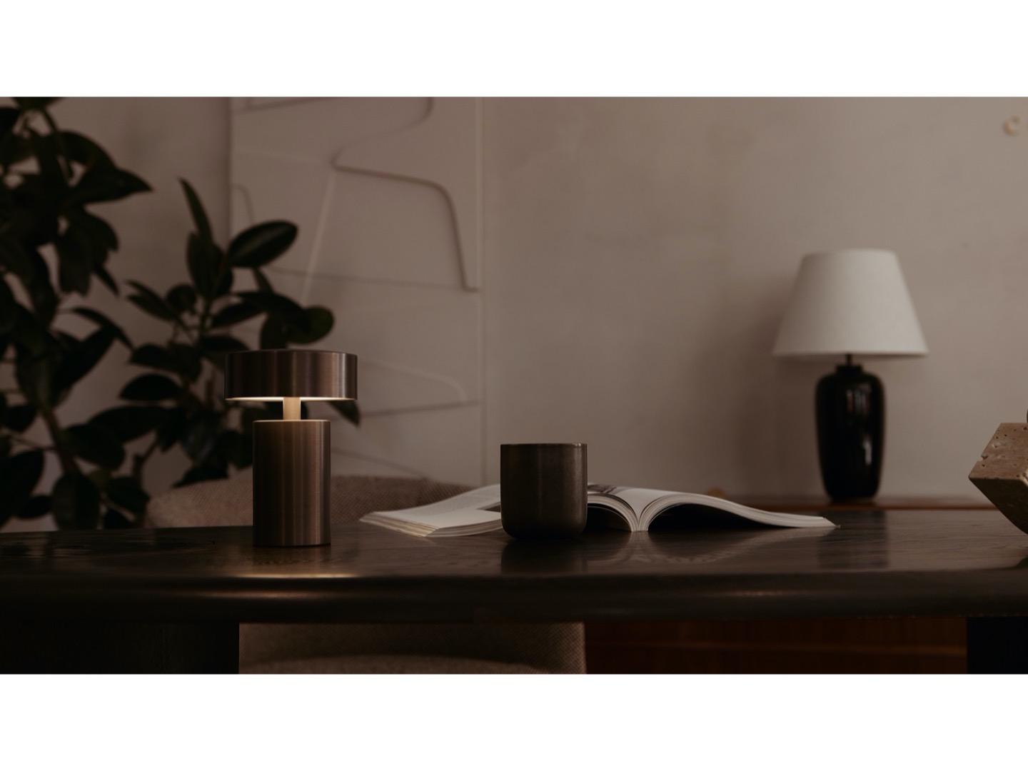 Lampa stołowa Torso firmy Krøyer-Sætter-Larsen, zaprojektowana została z ponadczasowym wyglądem, który nadaje się do każdego ustawienia. Podstawa odlana z czarnej glazurowanej kamionki i wydłużona dla subtelnego, ale rzeźbiarskiego wyrazu. Ściemniacz dotykowy z mosiądzu pozwala na indywidualne ustawienie intensywności światła.