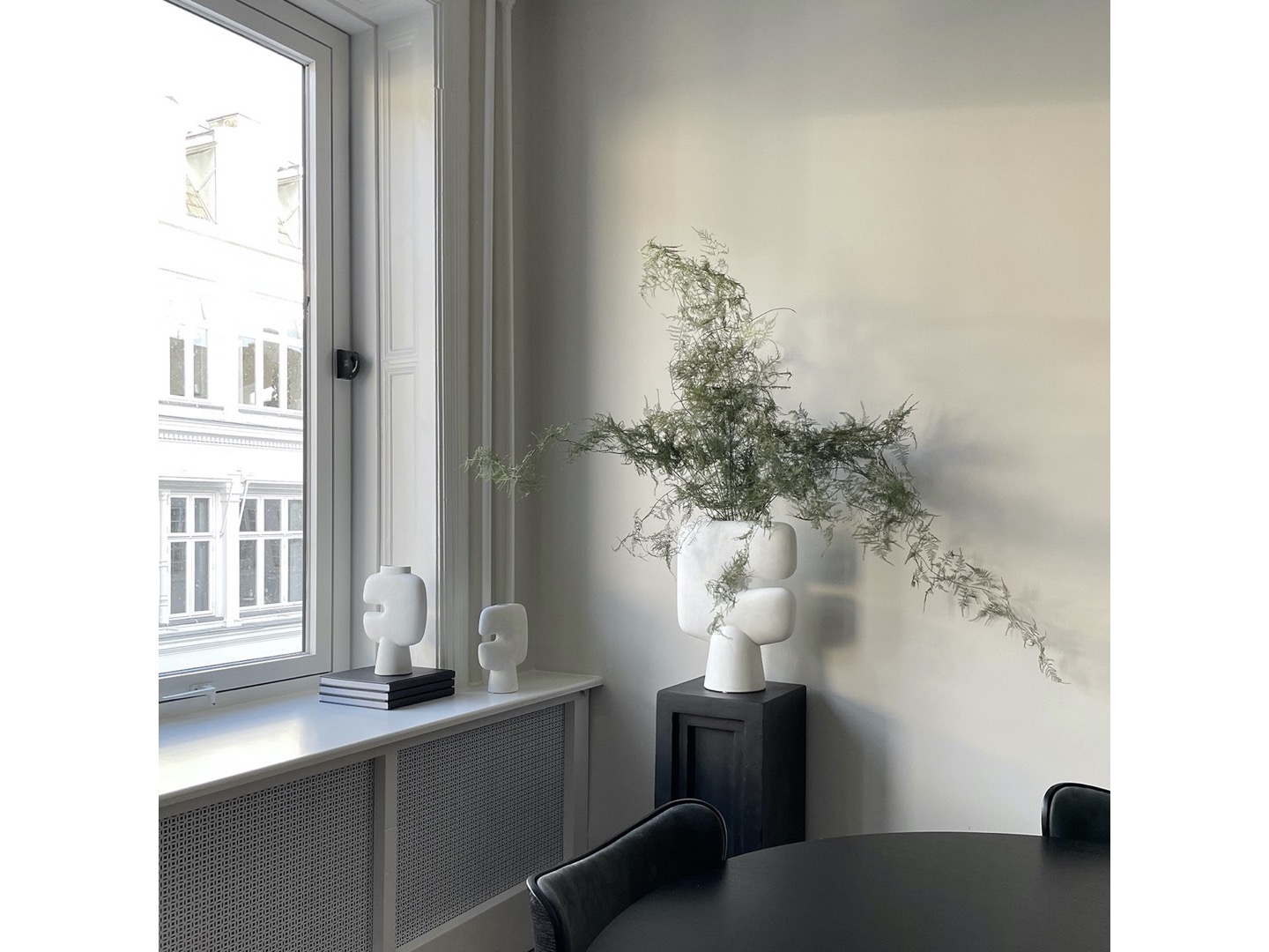 Kolekcja Tribal to seria wazonów zaprojektowanych jako rzeźbiarskie podejście do archetypowej maski plemiennej. Umieść pojedyncze łodygi kwiatowe w wąskim górnym otworze lub po prostu zostaw wazon jako samodzielny obiekt artystyczny. Ponieważ jest to produkt naturalny ręcznie glazurowany, kolory mogą się nieznacznie różnić i chociaż nie jest w 100% wodoodporny, w zestawie znajduje się torebka na świeże kwiaty.