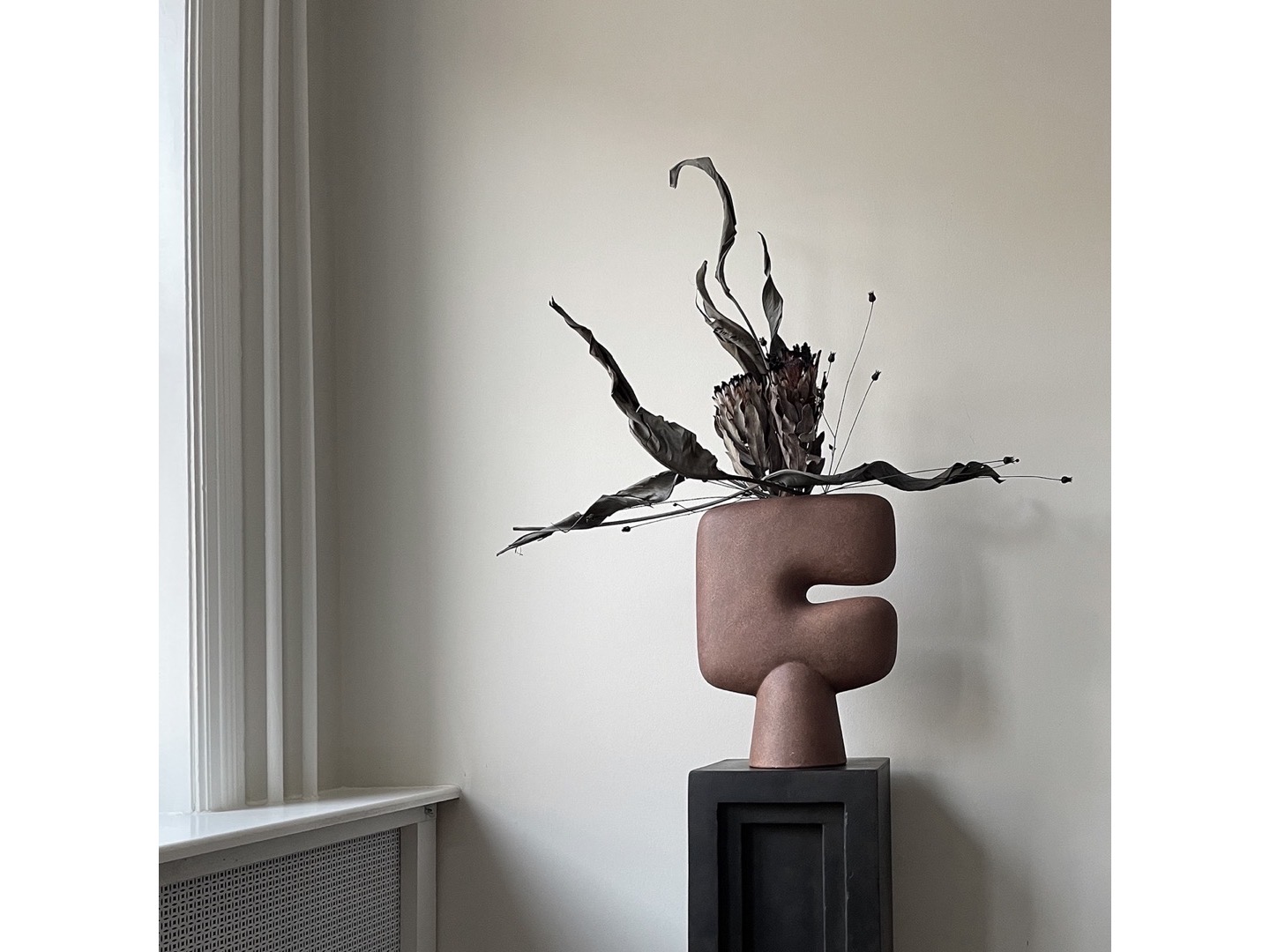 Kolekcja Tribal to seria wazonów zaprojektowanych jako rzeźbiarskie podejście do archetypowej maski plemiennej. Umieść pojedyncze łodygi kwiatowe w wąskim górnym otworze lub po prostu zostaw wazon jako samodzielny obiekt artystyczny. Ponieważ jest to produkt naturalny ręcznie glazurowany, kolory mogą się nieznacznie różnić i chociaż nie jest w 100% wodoodporny, w zestawie znajduje się torebka na świeże kwiaty.